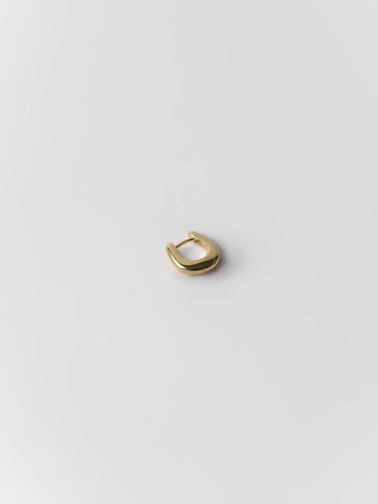 Boucle d’oreille huggie en laiton plaqué or 14 carats avec charnière assortie. Mesurant 12 mm x 11 mm, elle offre un style discret et moderne. Vendue à l’unité, parfaite pour un port quotidien élégant et facile à agencer avec d’autres boucles d’oreilles.