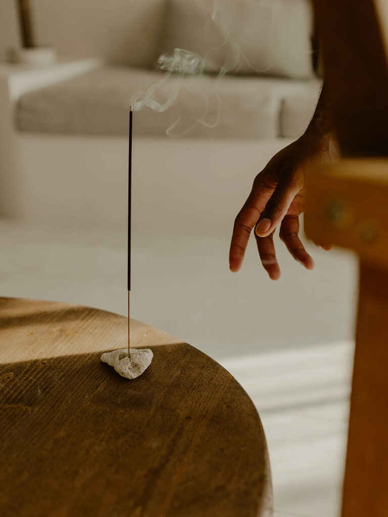 Encens artisanal au bois de cèdre et palo santo, infusé d’huiles essentielles naturelles. Son parfum boisé, fumé et terreux recrée l’atmosphère apaisante d’une forêt ancienne, idéal pour la relaxation, la méditation ou une ambiance sereine.
