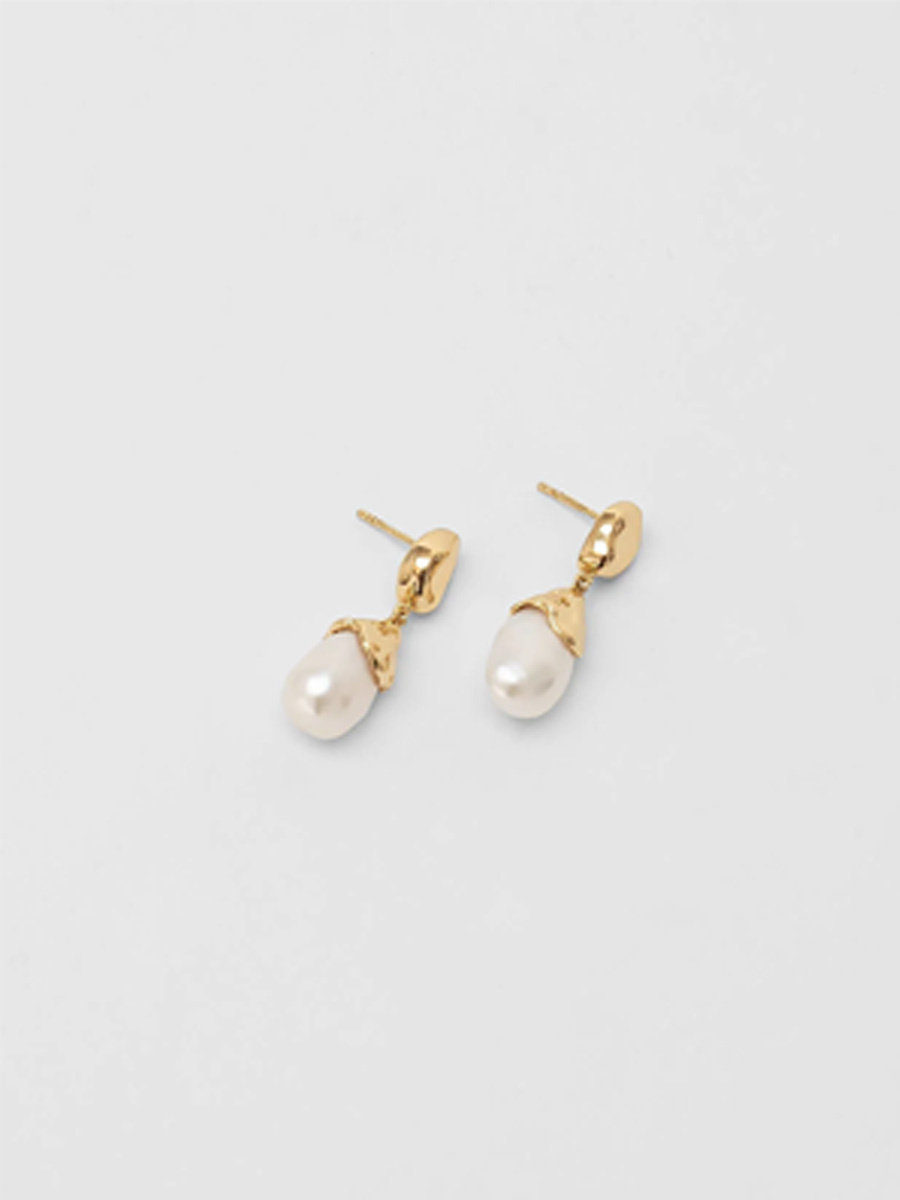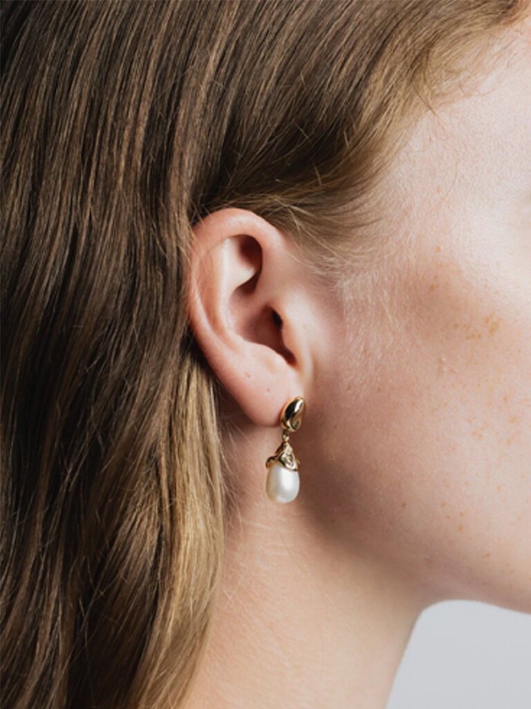 Boucles d'oreilles Pearl Drop . Plaqué or 14 k et perle