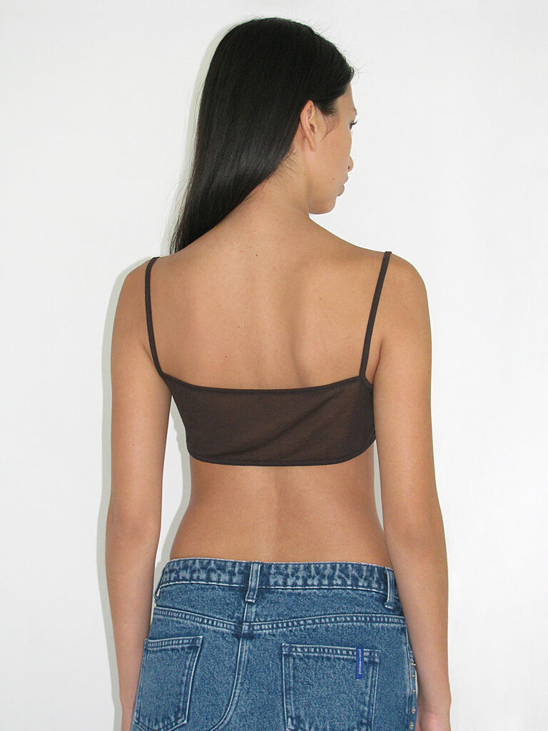 Haut réversible à fines bretelles. Un côté est légèrement transparent, l'autre est opaque.