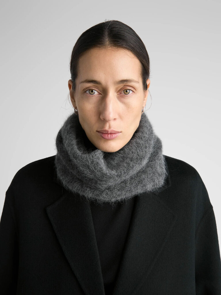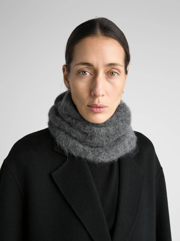 Col polyvalent et chaud en fil d’alpaga brossé.