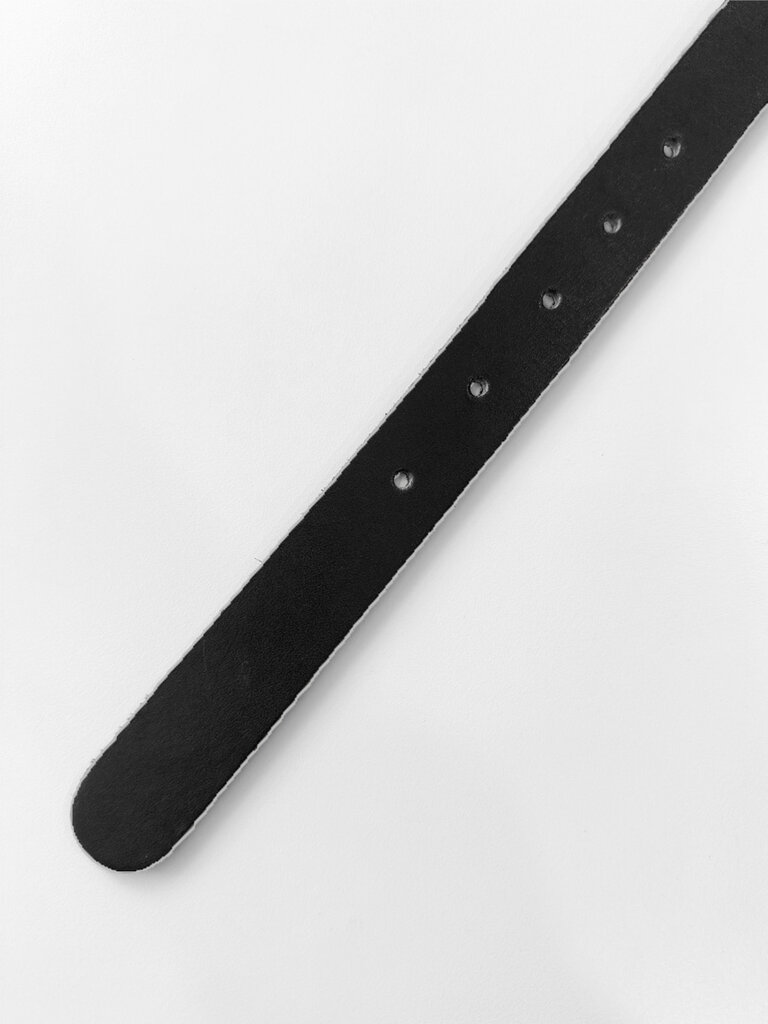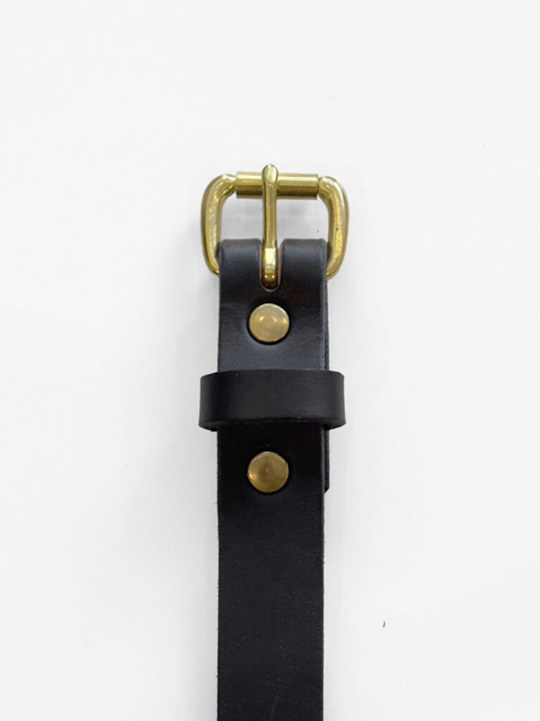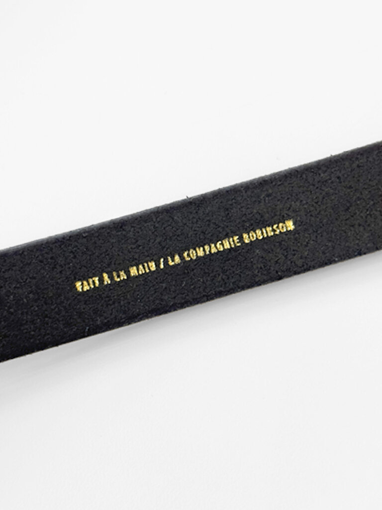 Ceinture mince cuir tanné végétal . Noir boucle laiton