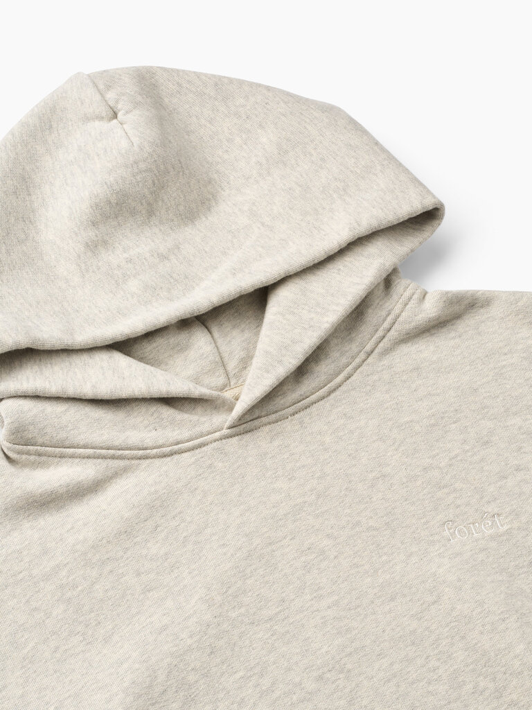 Le sweat à capuche Noon est conçu avec des épaules tombantes pour une coupe ample et décontractée. Confectionné en coton biologique épais, il allie confort et durabilité. Il est orné du logo forét subtilement brodé sur la poitrine.