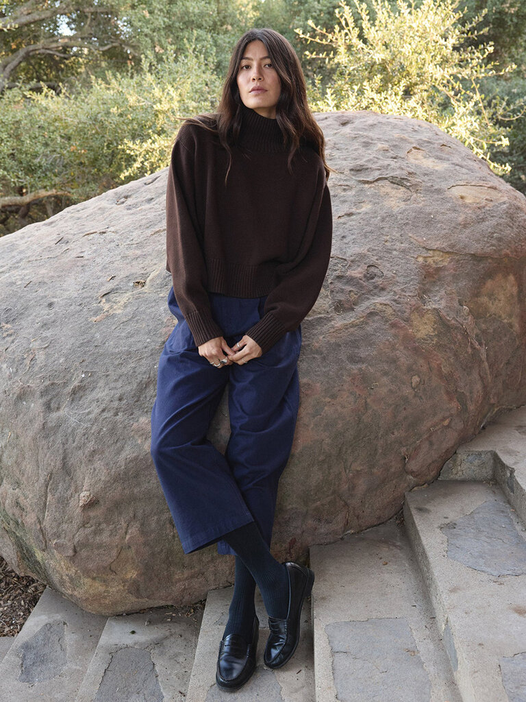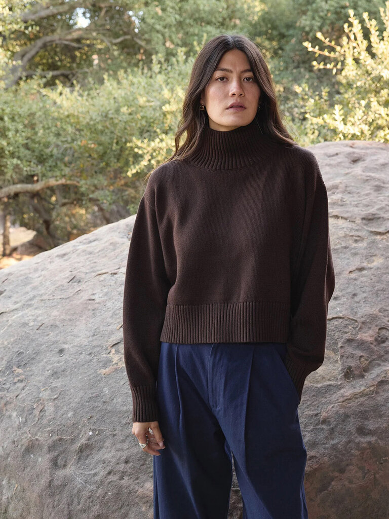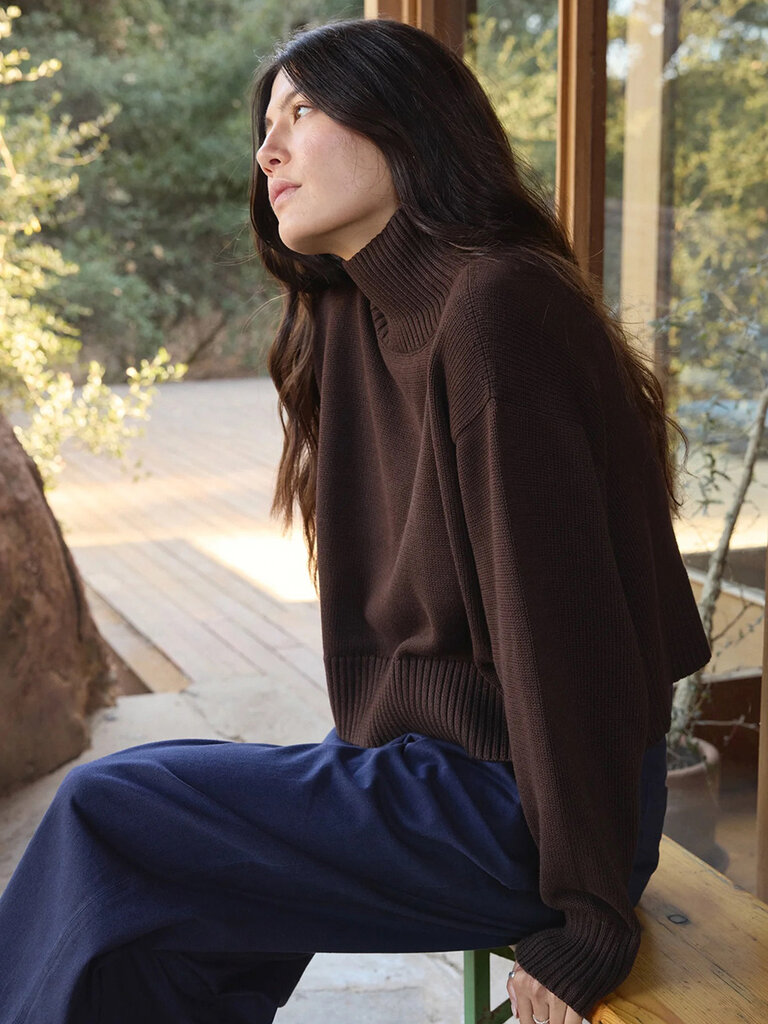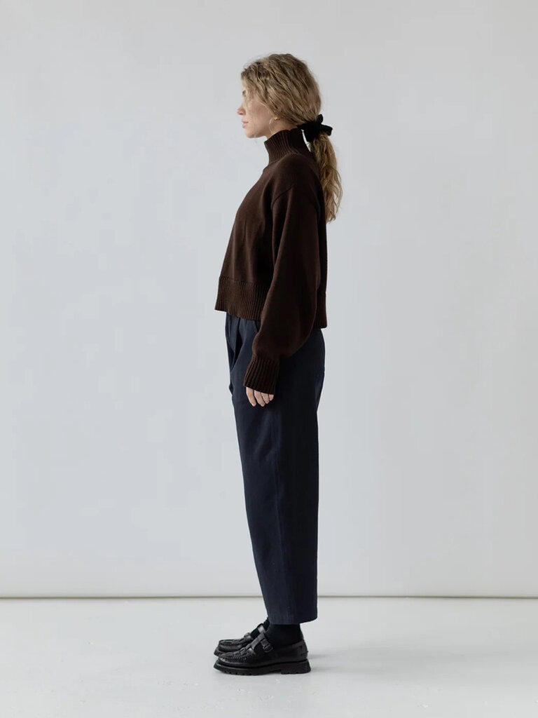 Chandail écourté col montant en coton bio . Noyer
