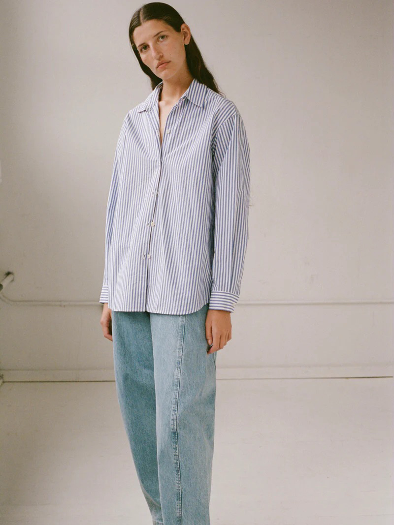 La Chemise Classique est l’incarnation parfaite de la coupe boyfriend oversize. Confectionnée en popeline de coton japonaise, elle présente un col structuré, des poignets boutonnés et un ourlet arrondi. Une blouse polyvalente à porter seule ou superposée.