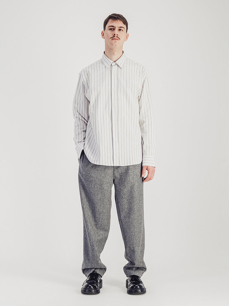 Chemise décontractée en popeline à rayures tissées. La matière d'origine Française a une texture dense et un toucher particulièrement cotonneux.