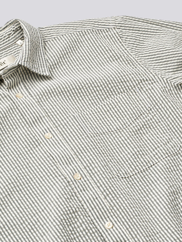 La chemise Maple en seersucker est confectionnée en coton léger au fini texturé et doux. Coupée dans une silhouette régulière, avec un col classique et une poche poitrine, elle offre un équilibre naturel entre structure et aisance.