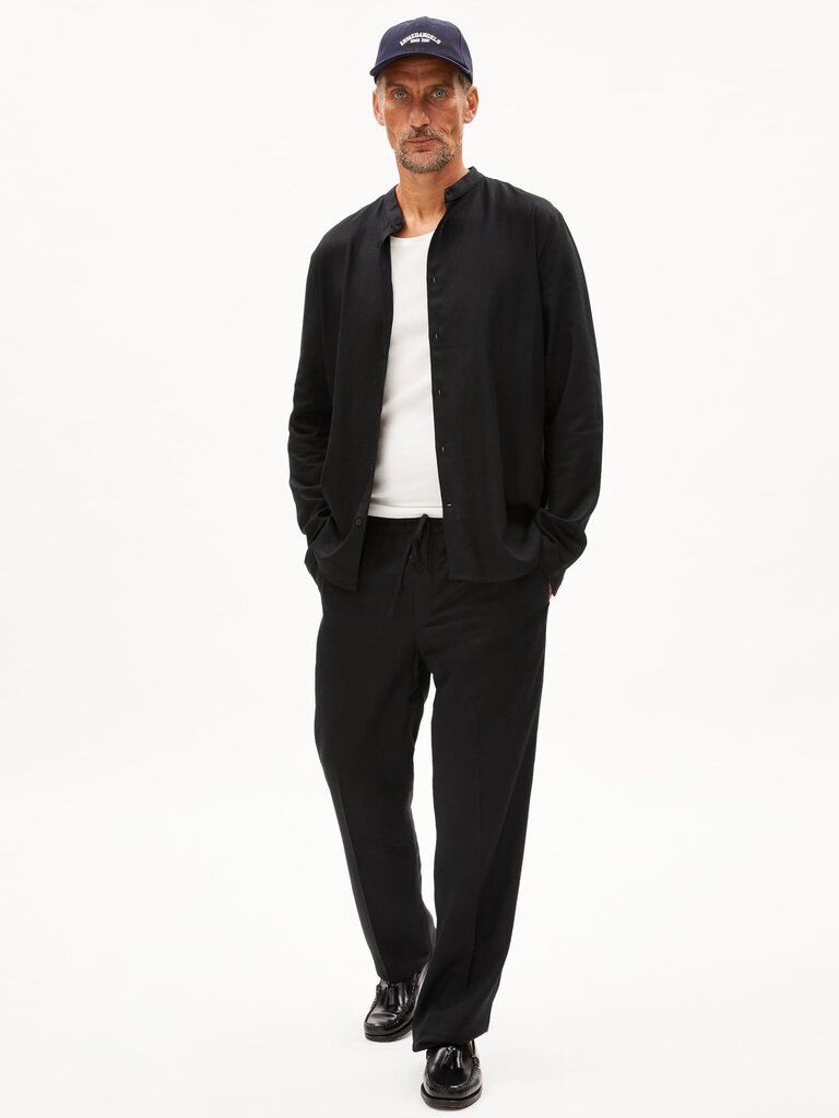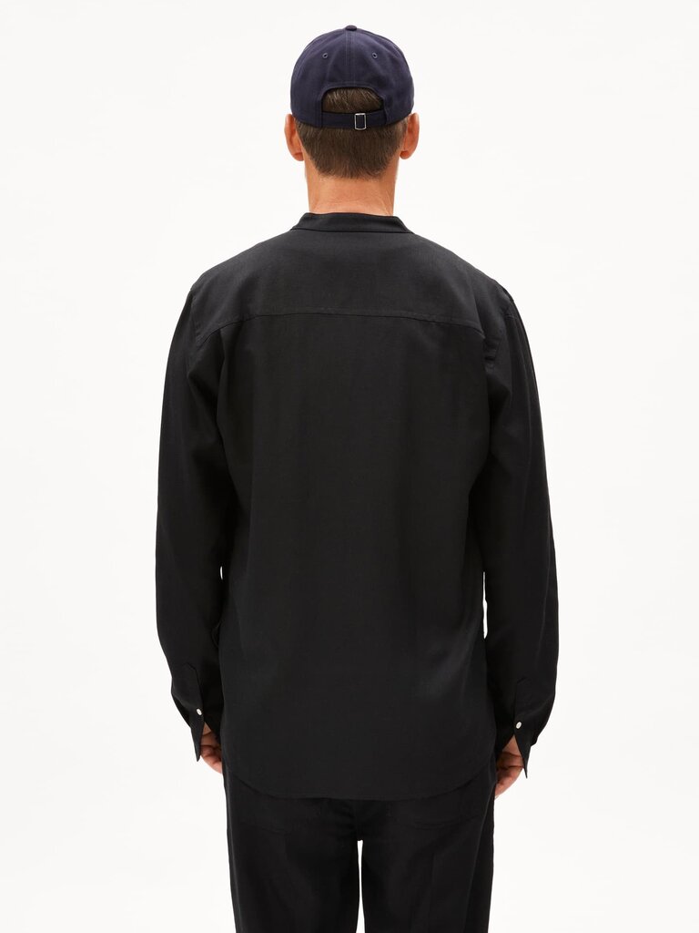 Chemise à col mao, confectionnée dans un mélange de lin léger. Sans poches, elle présente une patte de boutonnage discrète et des manches longues. Une pièce épurée au style intemporel, idéale pour les journées douces ou les superpositions légères.