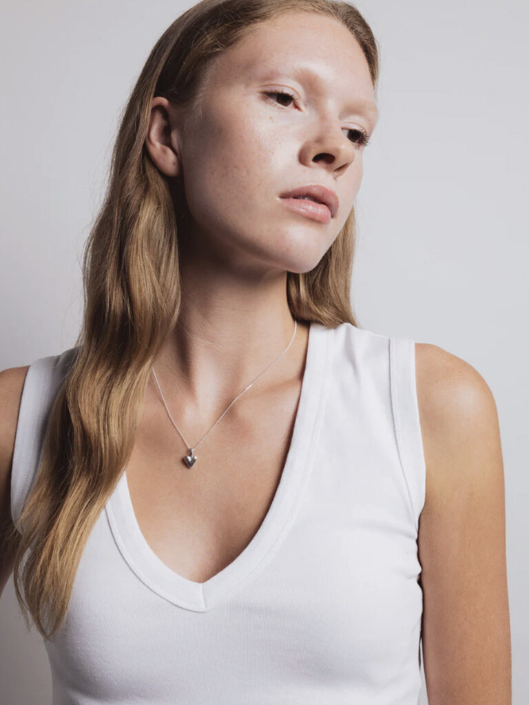 Collier à breloques en forme de petit cœur en argent sterling 925 recyclé. La chaîne mesure 45,7 cm de long.