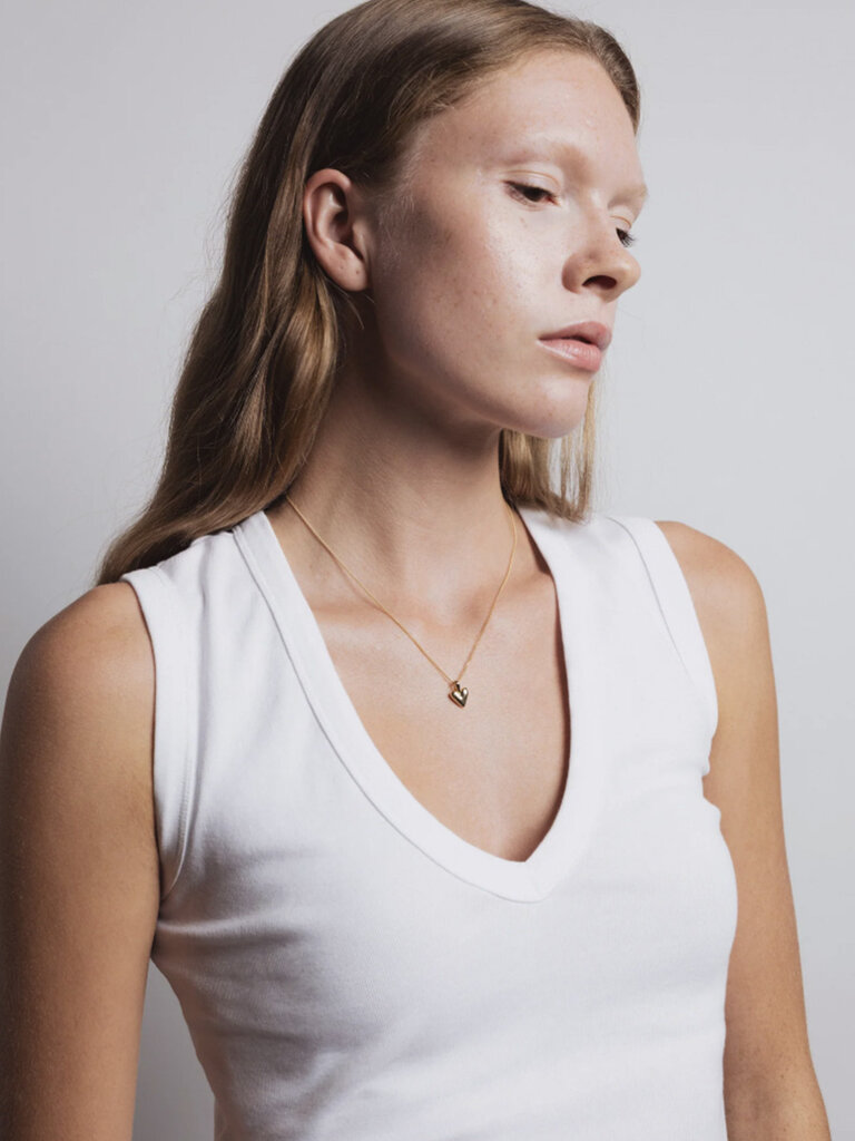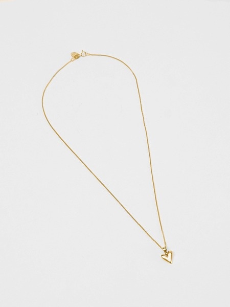 Collier avec petit cœur en laiton recyclé hypoallergénique plaqué or 14 carats. La chaîne mesure 45 cm de long.