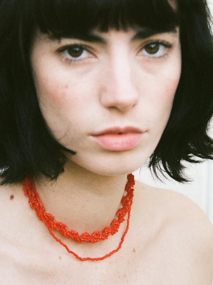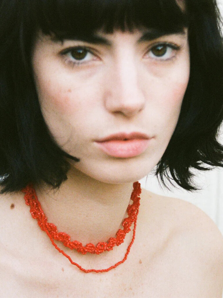 S'inscrire- Le collier Essa blanc porté par Samya mesure 36 cm