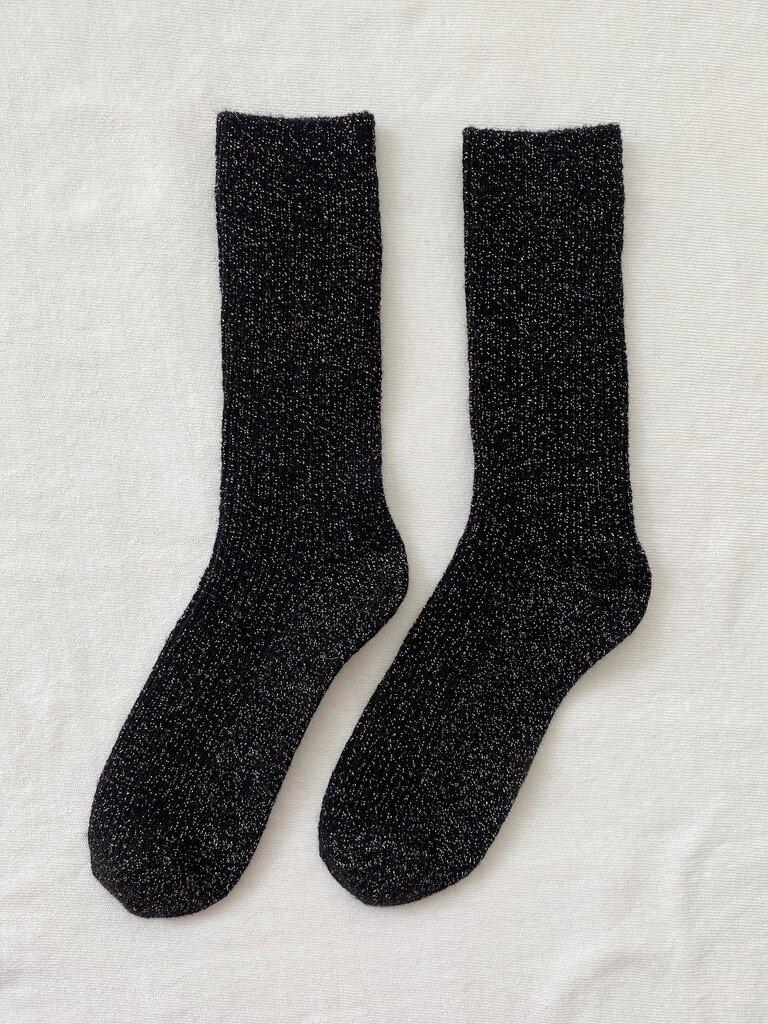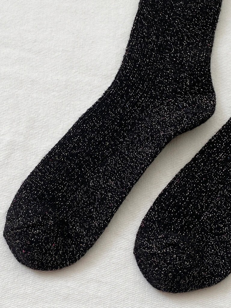 Fabriquées à partir d'un mélange de laine et de Lurex, ces chaussettes vous permetteront de passer l'hiver avec style. Peut être portée vers le haut pour une couche supplémentaire de chaleur ou froissée ou pliée avec vos sabots ou ballerinas préférés.
