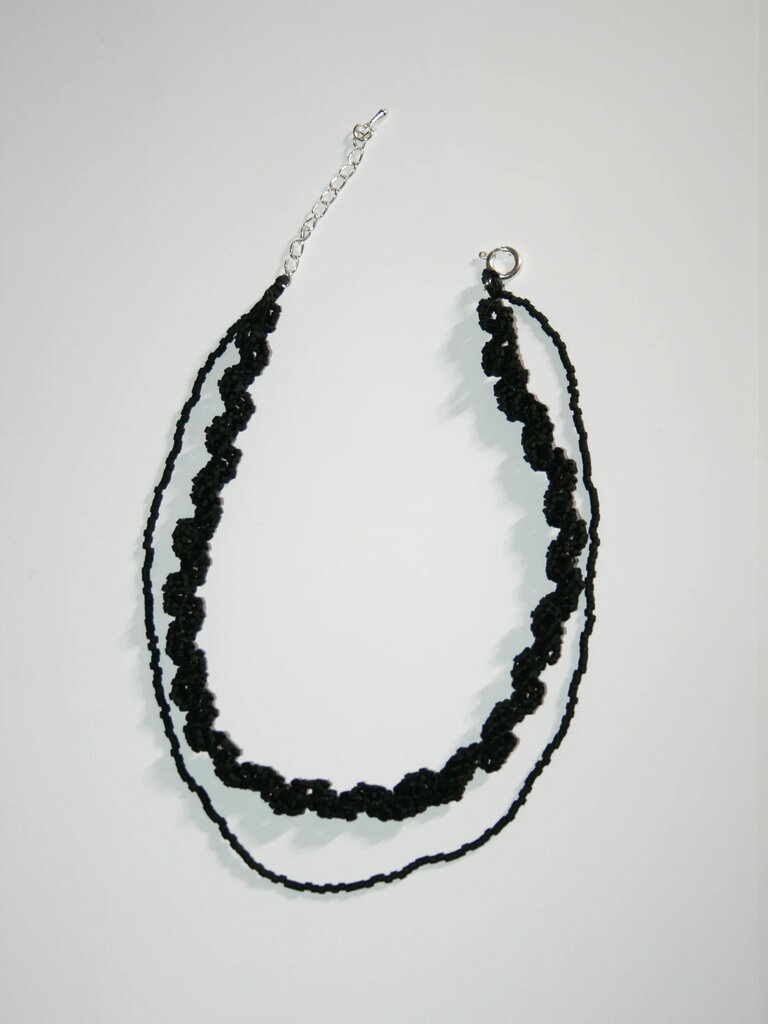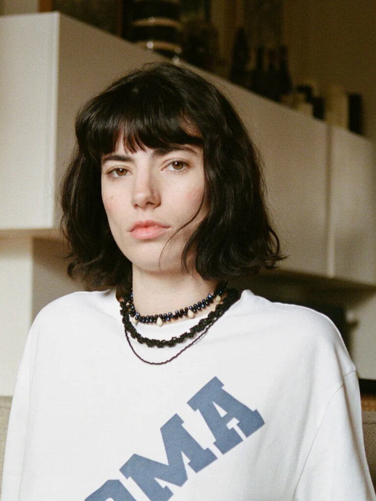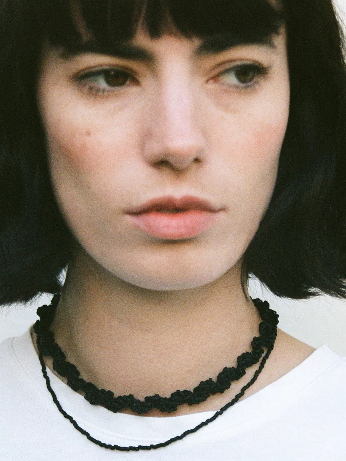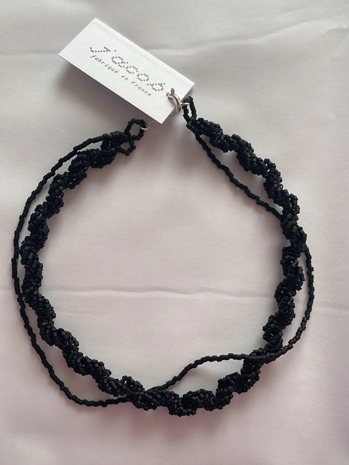 - Le collier Essa blanc porté par Samya mesure 36 cm
