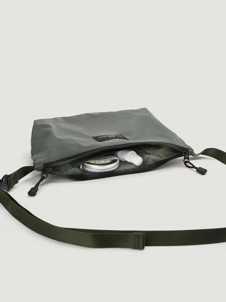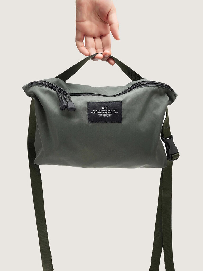 Petit sac en toile de nylon douce et légère, à porter en bandoulière, à la taille ou à la main. Déperlant, avec poignée dissimulée, bandoulière réglable, poche intérieure et fermeture éclair sur le dessus. Polyvalent et pratique.