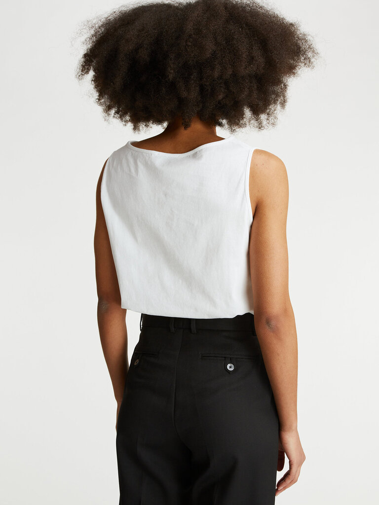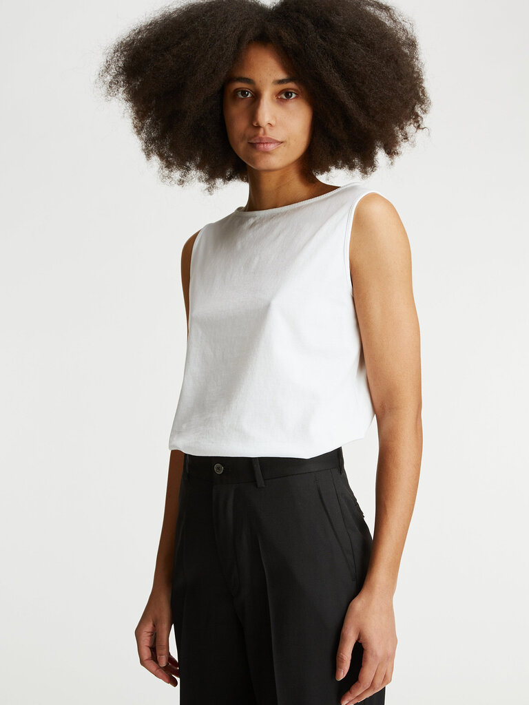 Eva est confectionnée dans un jersey 100 % coton léger, tricoté au Portugal. Elle présente une coupe ajustée, une encolure bateau avec un fin bord-côte en jersey au col et aux ouvertures de manches.