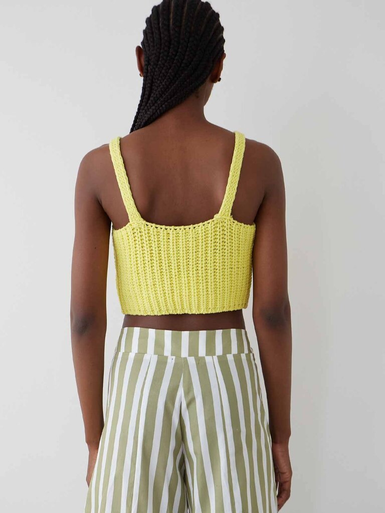 Haut court simple et lumineux en crochet. Coupe ajustée. 50% Coton 50% PC. dessiné à Barcelone et fait en Italie.