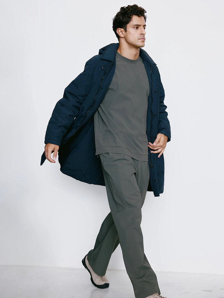 Un manteau mi-long aux lignes épurées, à l’allure décontractée et aux détails fonctionnels. Un essentiel raffiné pour les journées plus fraîches, conçu pour passer sans effort des rues de la ville aux escapades du week-end.