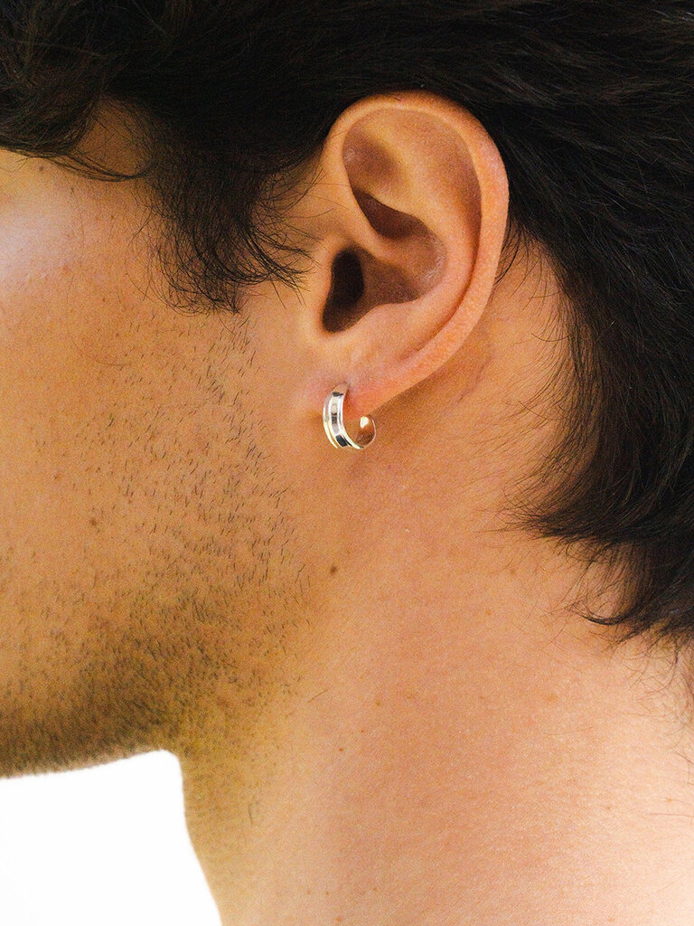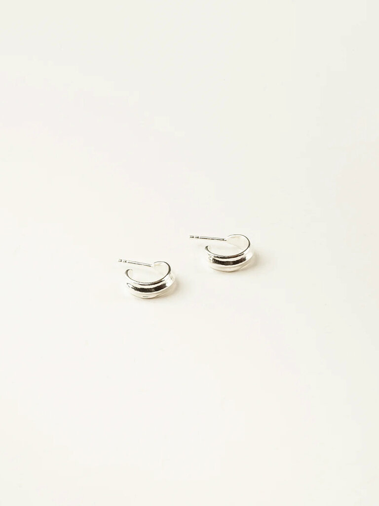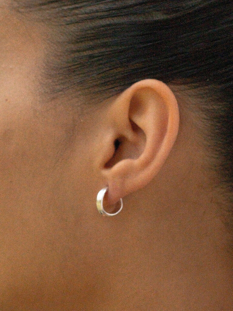 Les boucles d'oreilles Ria en argent sterling (925) font partie de la collection Littoral: leurs formes imparfaites rappellent une baie étroite envahie par la mer. Ils ont un diamètre de 1,4 cm et l’anneau est 4,5 millimètres de large.