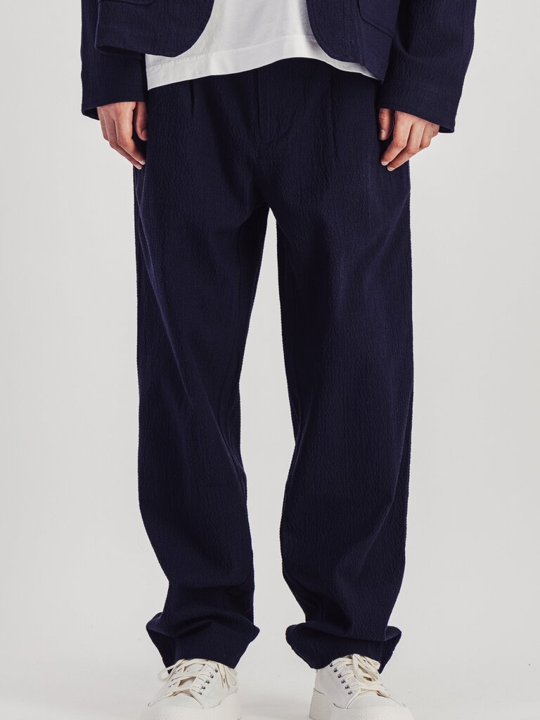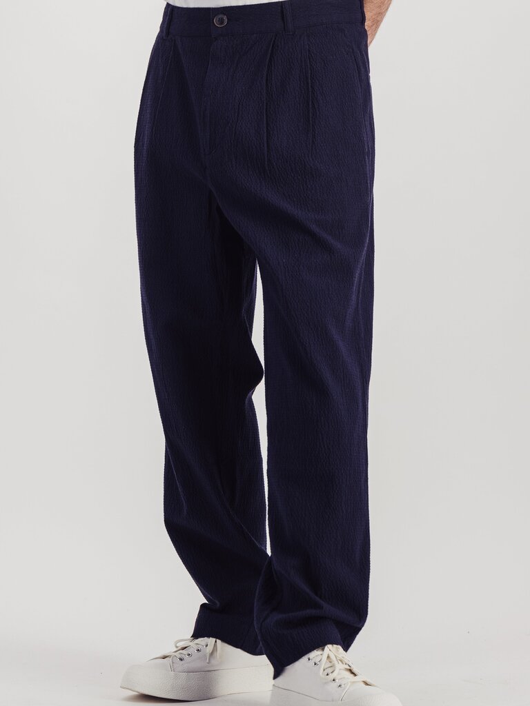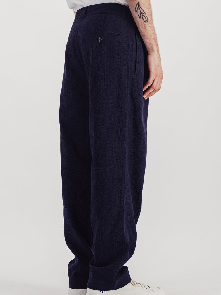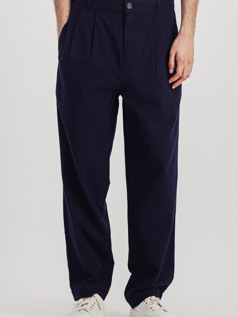 S'inscrirePantalons en seersucker Double Pleats . Marine
