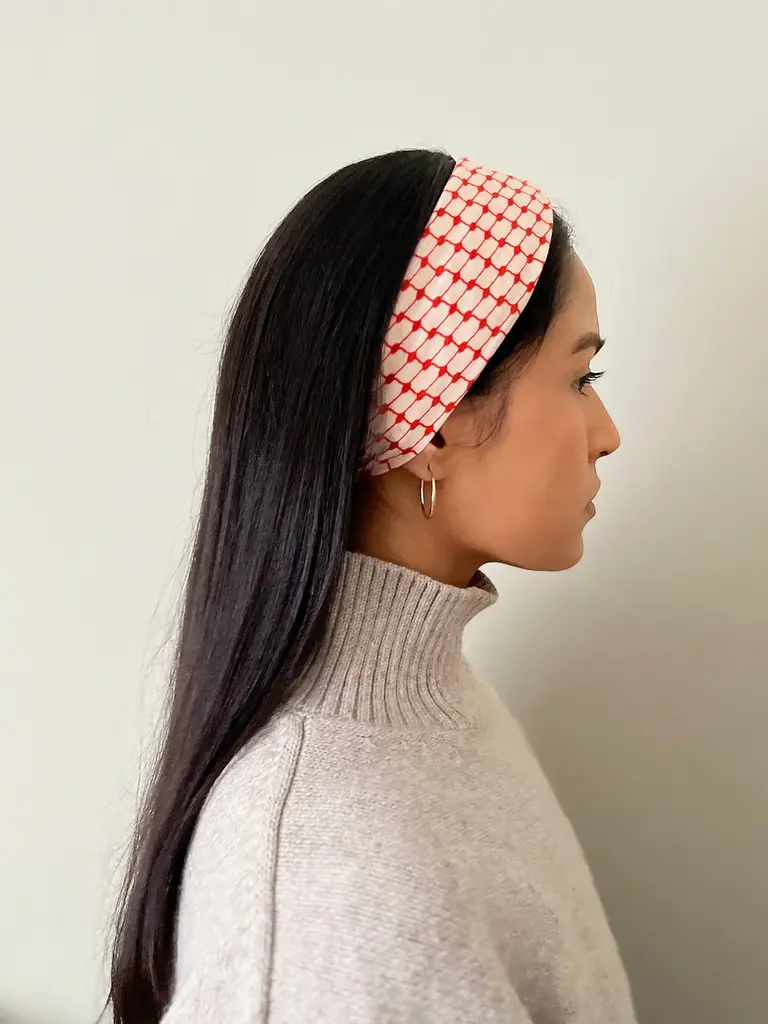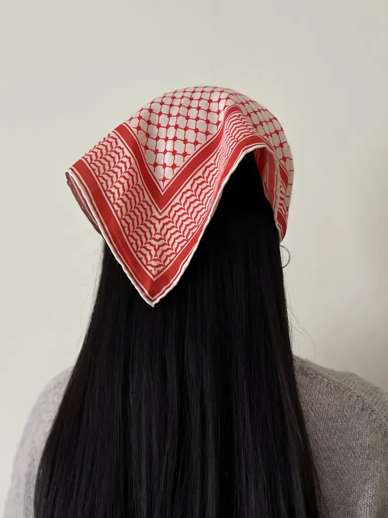 Petit foulard Keffieh en soie et coton . Blanc et rouge