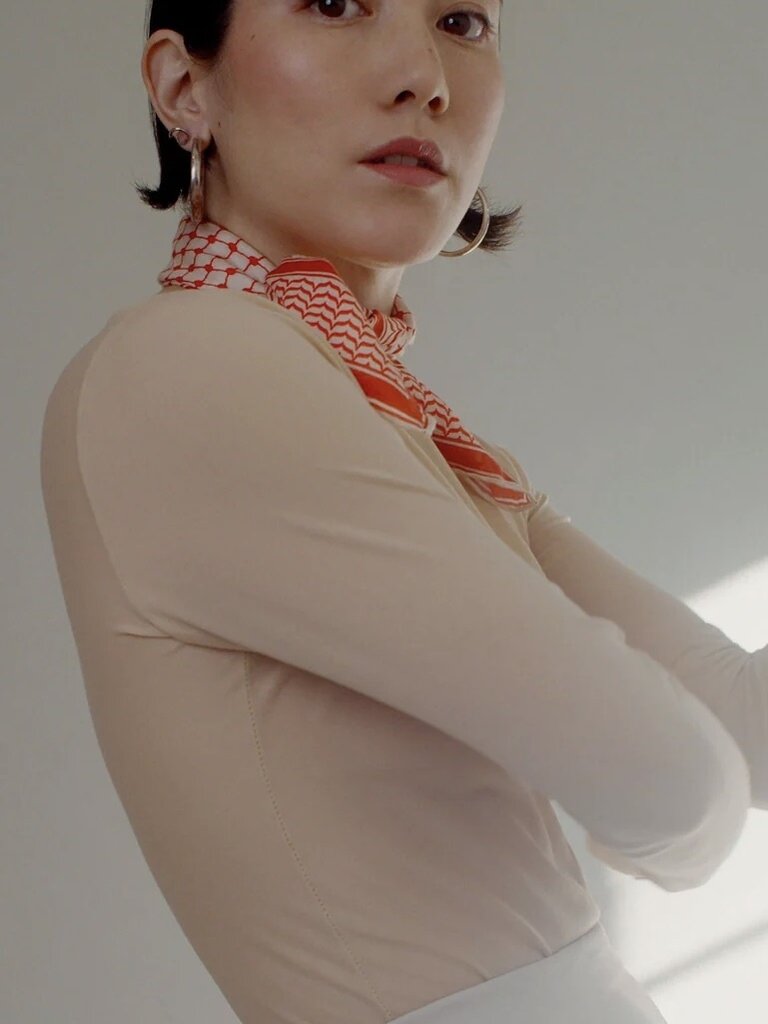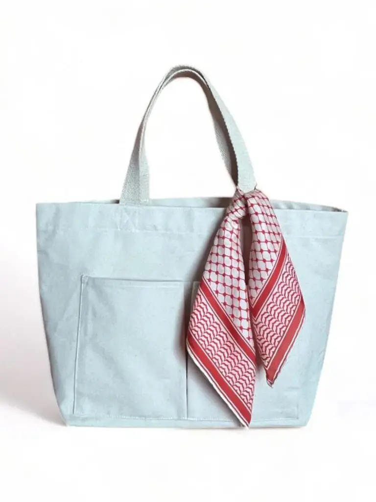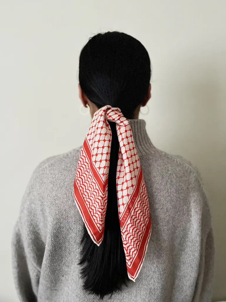 Foulard inspiré du keffieh palestinien, symbole de résistance. Confectionné en fibres naturelles douces et de haute qualité, imprimé et cousu à la main par une équipe de femmes dans une petite usine écologique en Turquie.