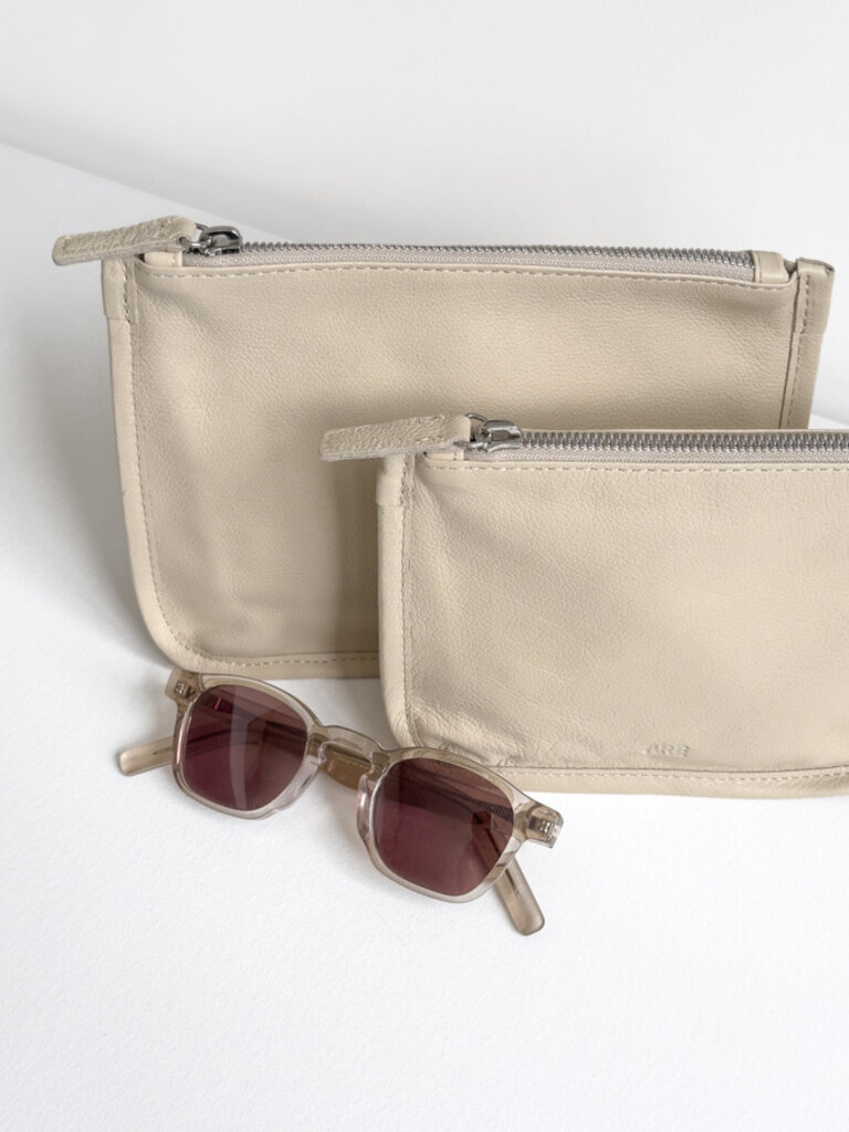 Pochette souple en cuir avec fermeture à glissière. Disponible chez Betina Lou en formats petit et moyen. Parfaite pour organiser ses effets personnels dans un sac ou à utiliser seule comme portefeuille.