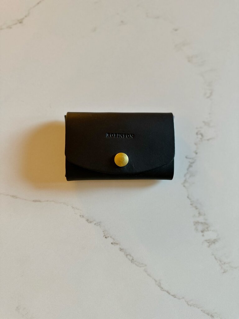 Porte-cartes en cuir. Vous pouvez l'utiliser comme un petit portefeuille, pour les pièces de monnaie ou pour ranger vos cartes. Aussi disponible en naturel.