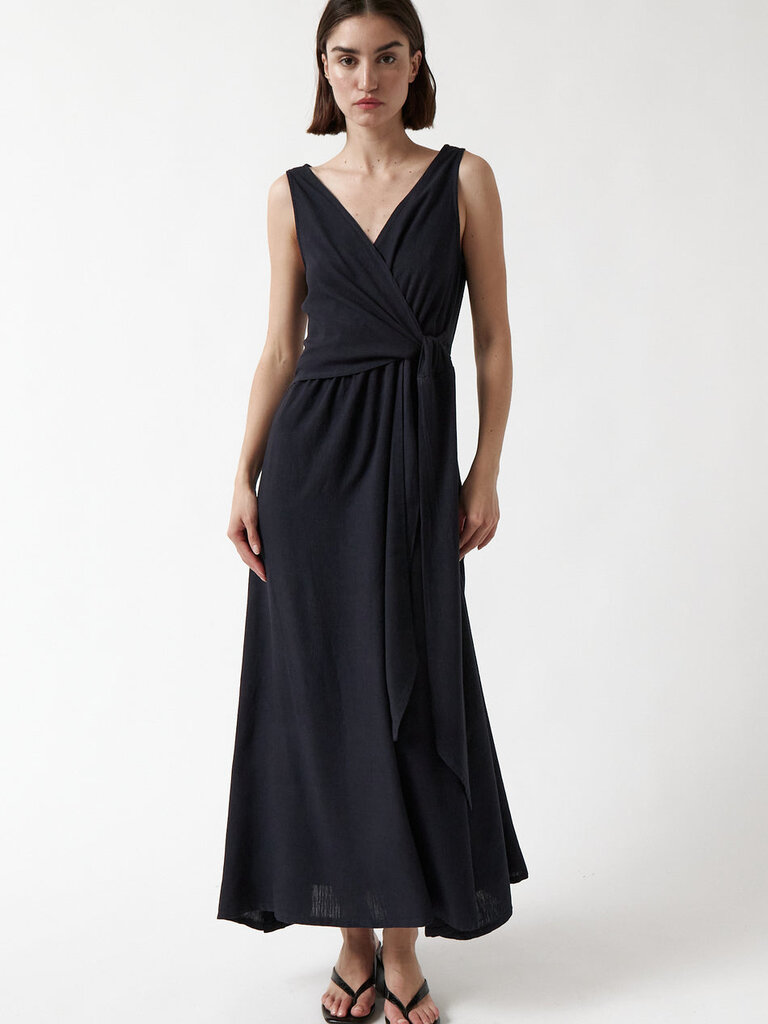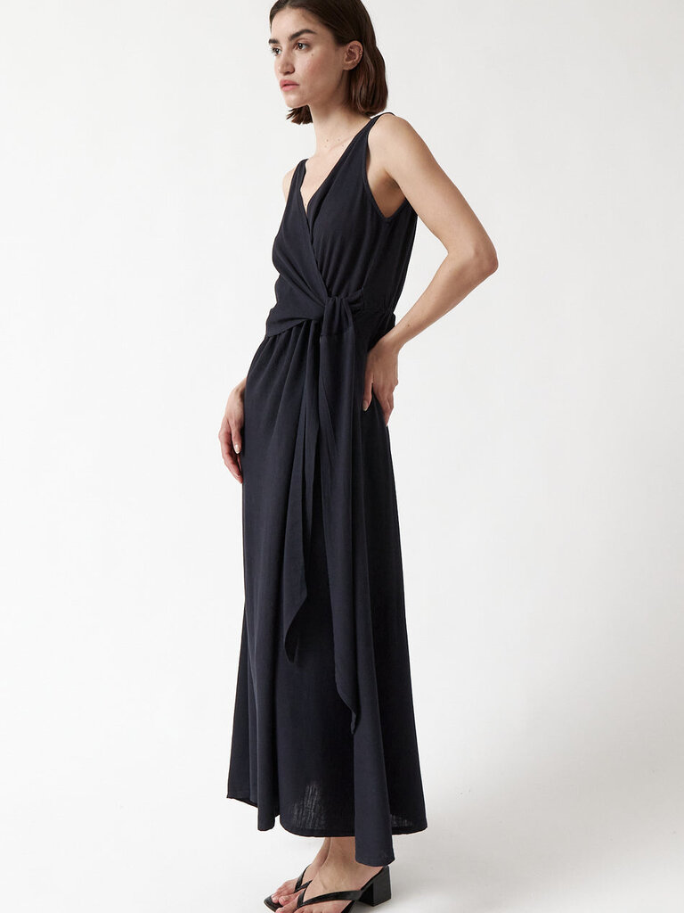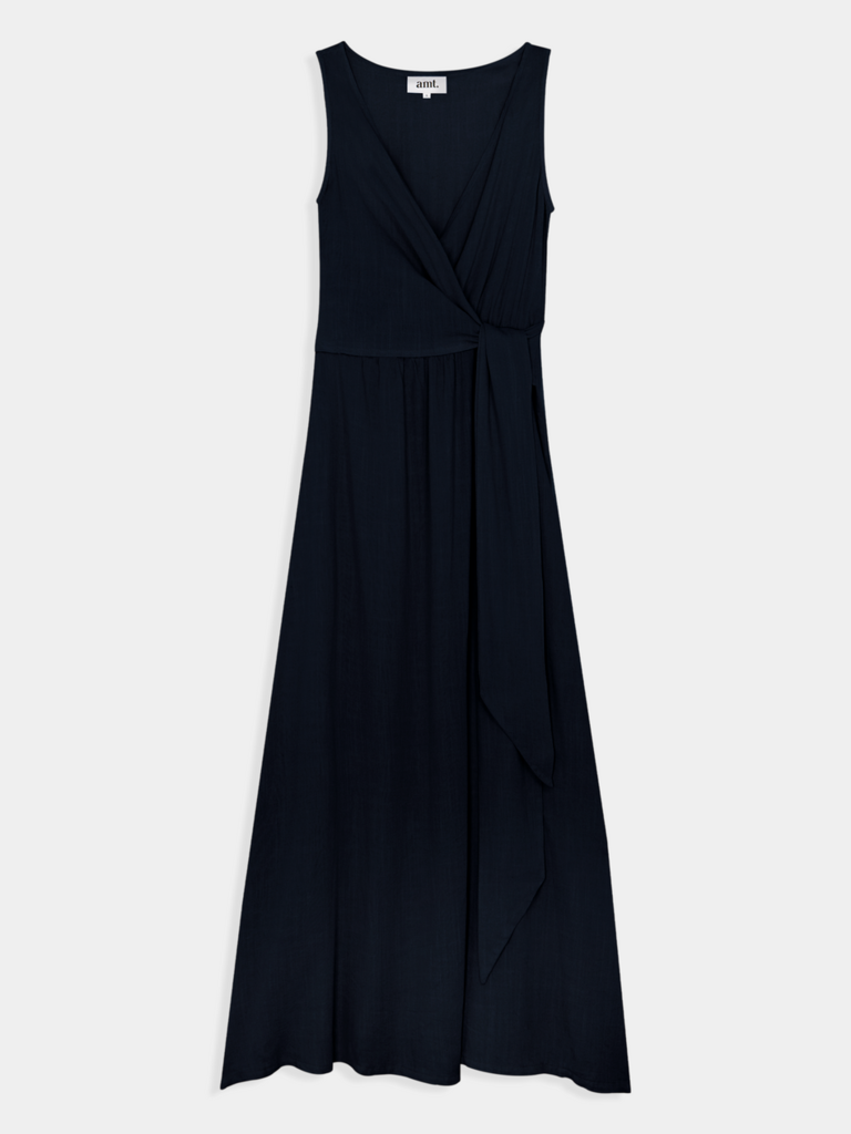 Conçue pour l'élégance et le confort, cette robe à longueur de cheville présente un haut cache-coeur flatteur. Le lien réglable sur le côté assure un ajustement parfait à chaque fois. Une fente latérale à l'ourlet ajoute une touche d'allure et d'aisance.