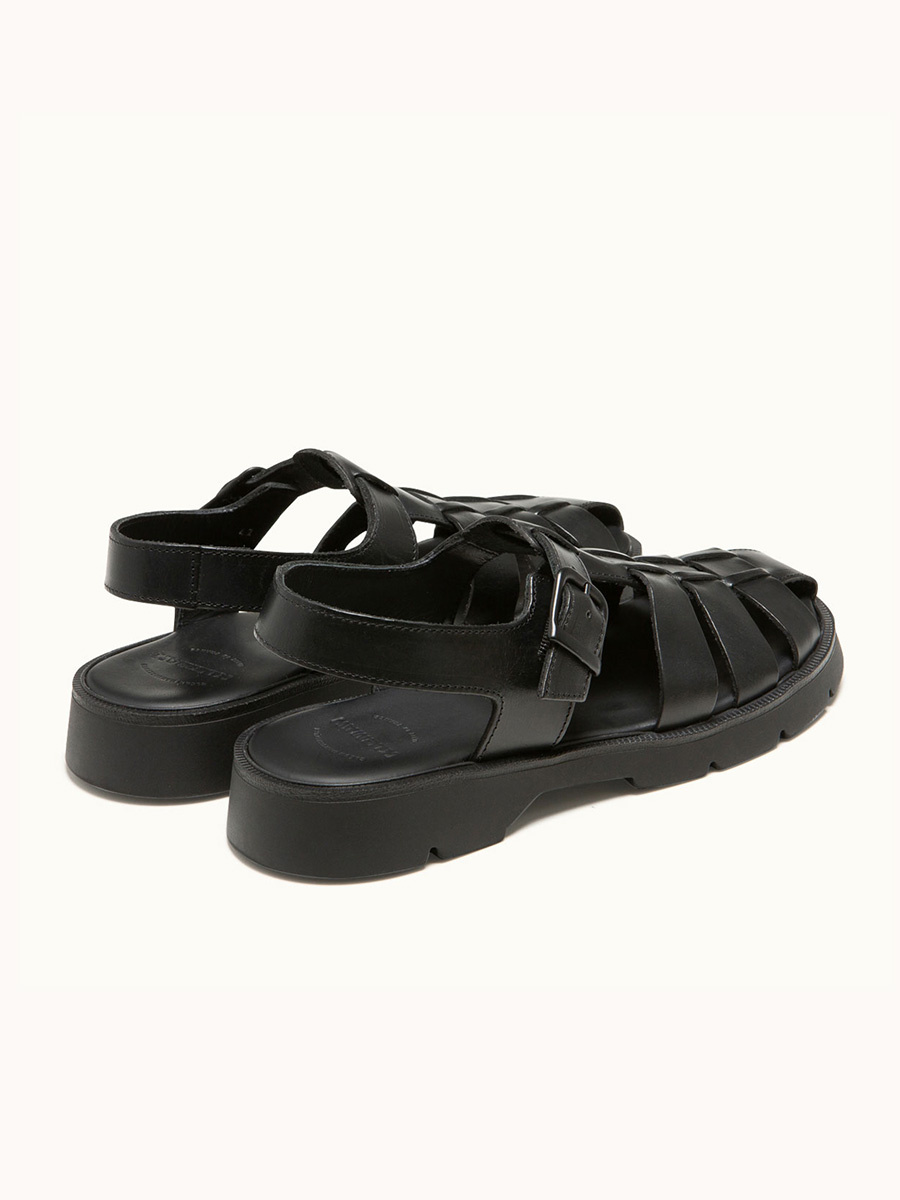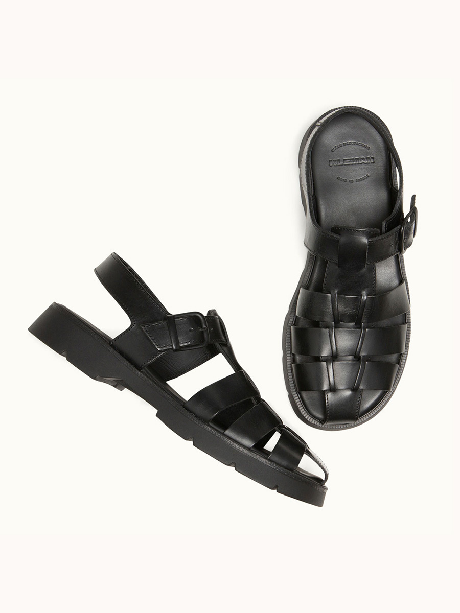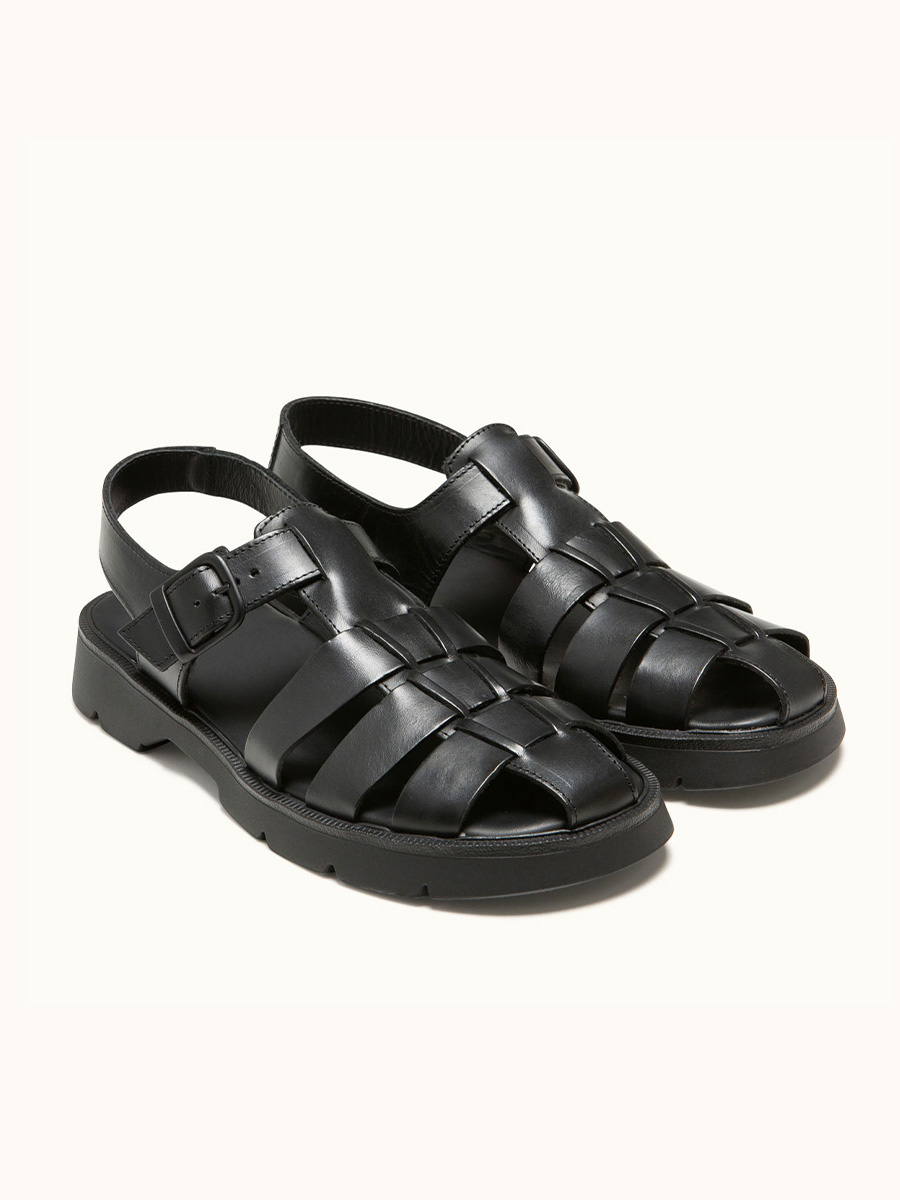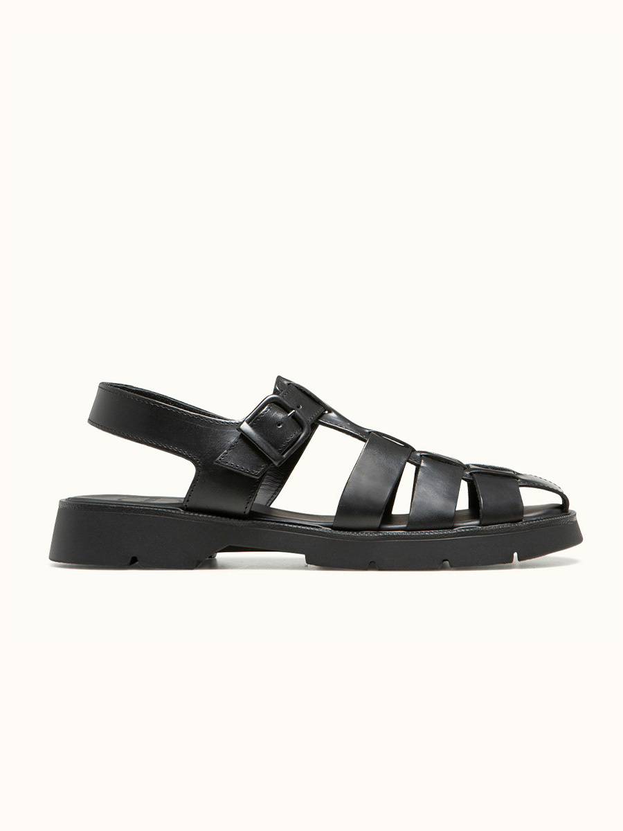 Les sandales fisherman Babord VGT pour homme associent un style intemporel et une conception robuste. Fabriquées en cuir noir au tannage végétal, elles se distinguent par leur semelle crantée, incarnant l’esprit workwear emblématique de Kleman.