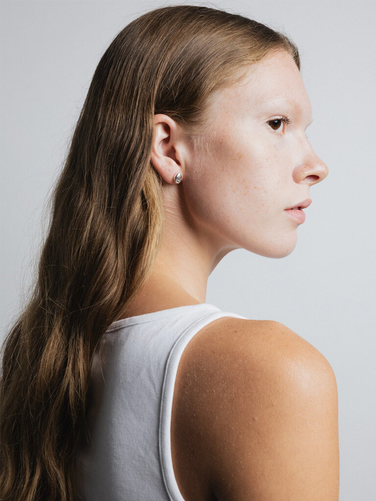 Petites boucles d'oreilles à tige en forme de haricot, en argent sterling 925 recyclé hypoallergénique.