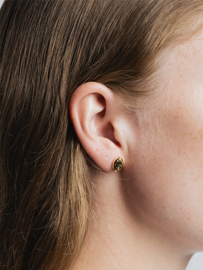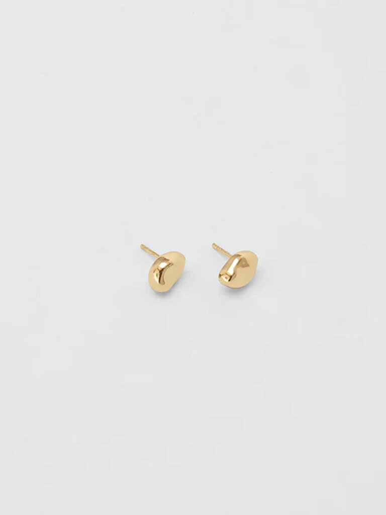 Petites boucles d'oreilles à tige en forme de haricot, en laiton recyclé hypoallergénique plaqué or 14 carats.Les bijoux Wolf Circus sont conçus et fabriqués à la main à Vancouver, au Canada.