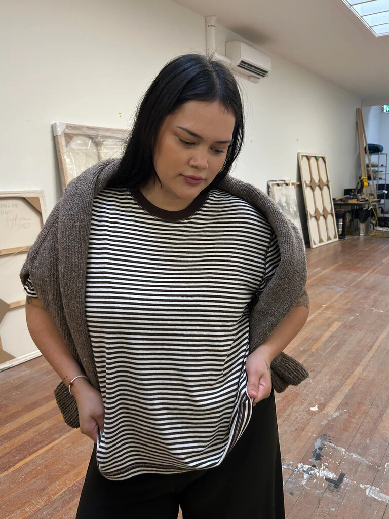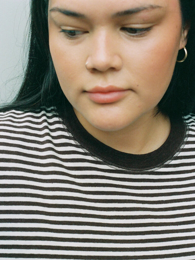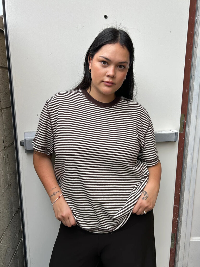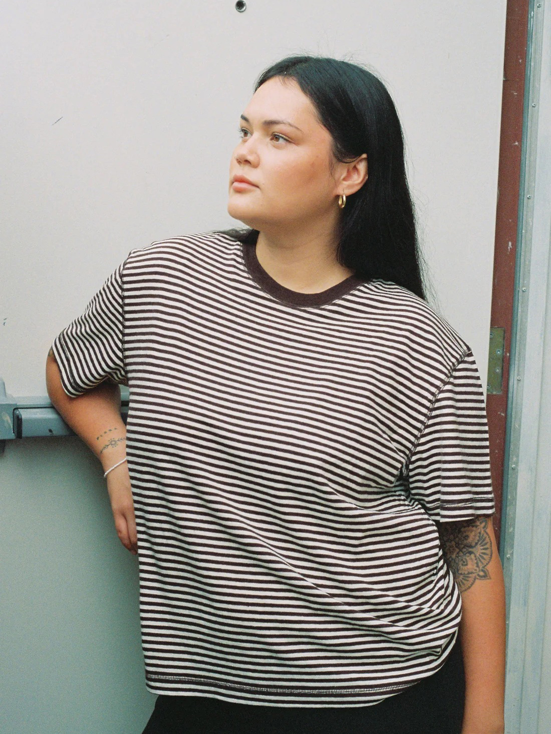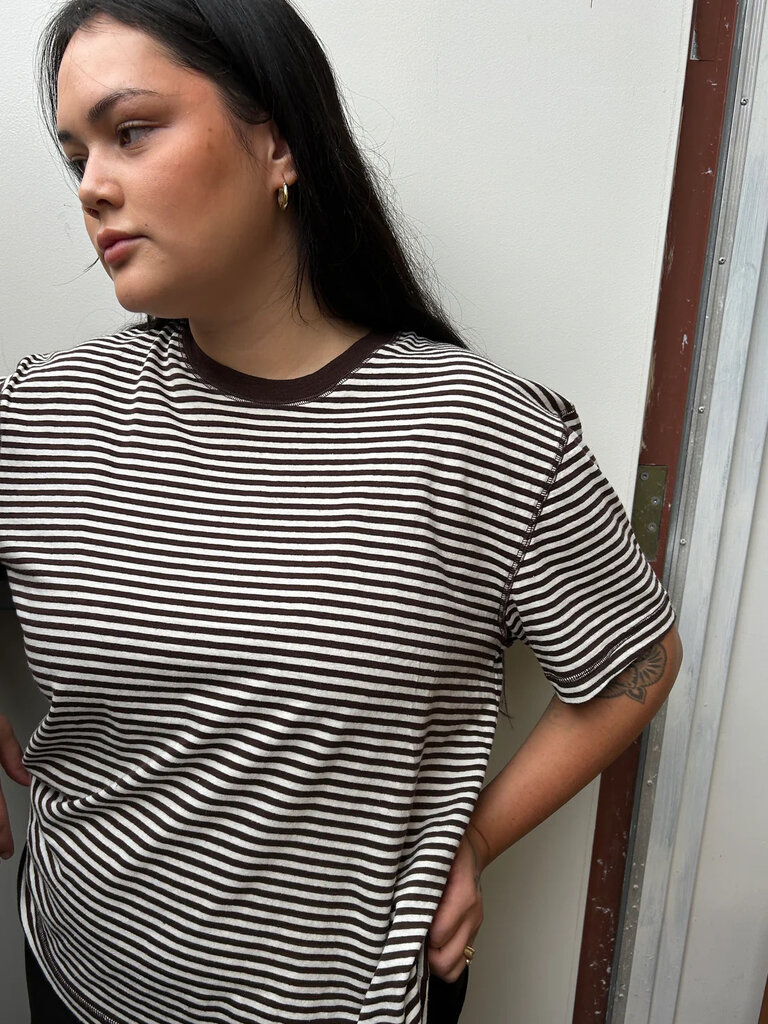T-Shirt en chanvre et coton bio Rover . Rayé chocolat