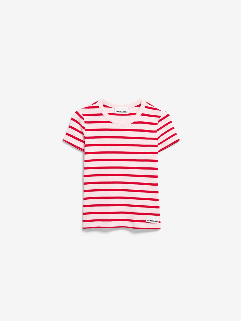 T-Shirt rayé et ajusté en coton bio Kardaa . Pink mist/Mars red