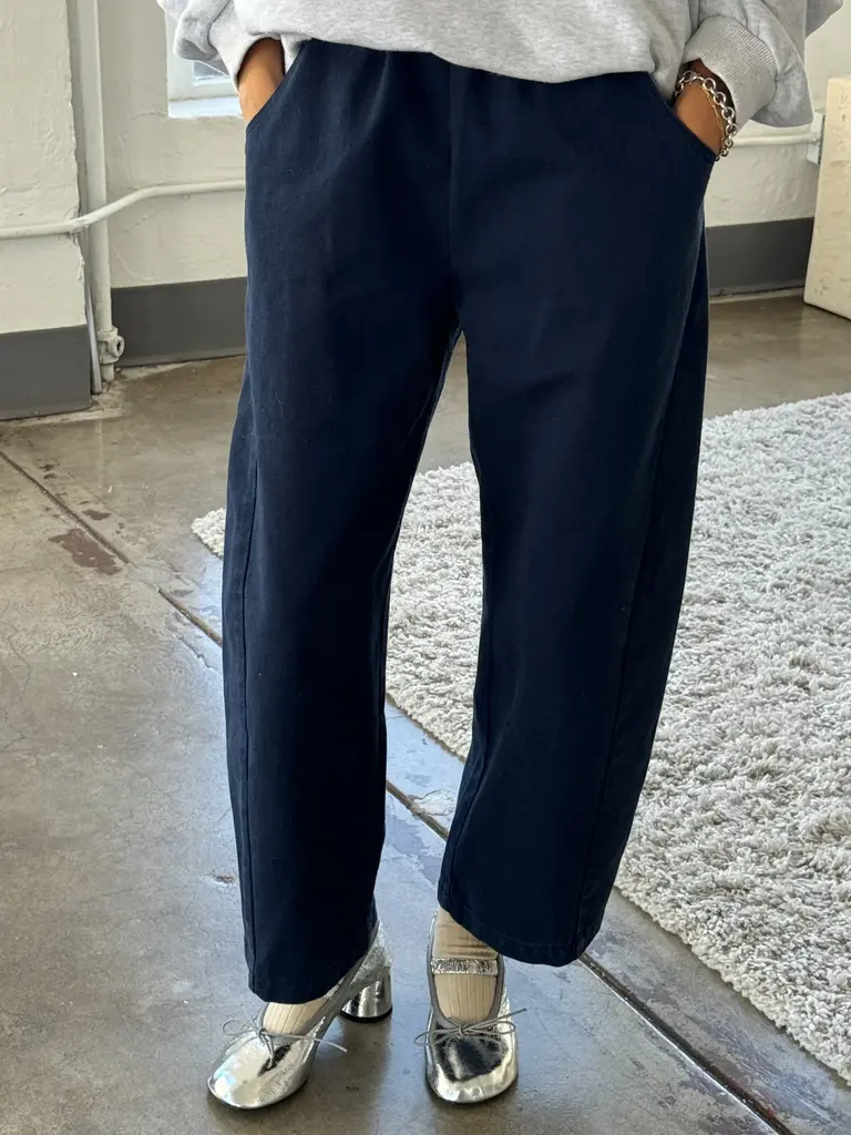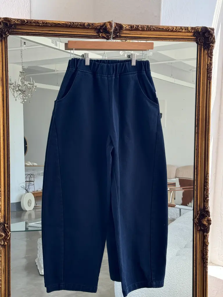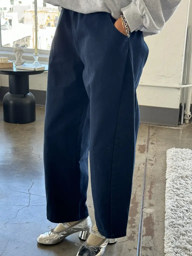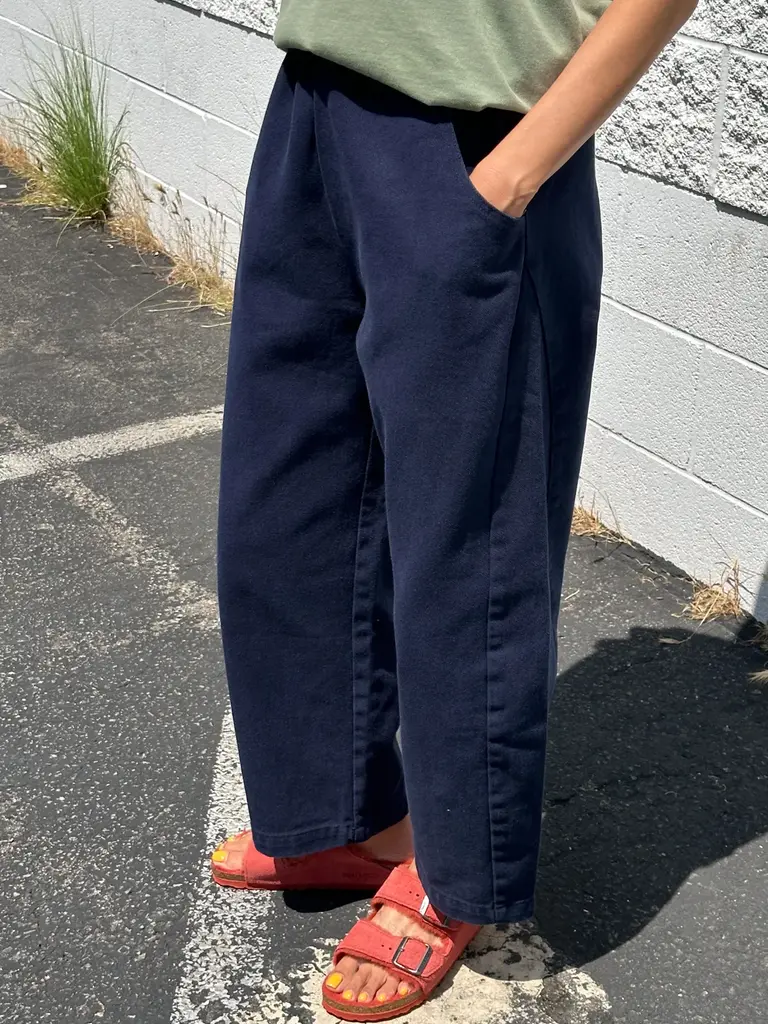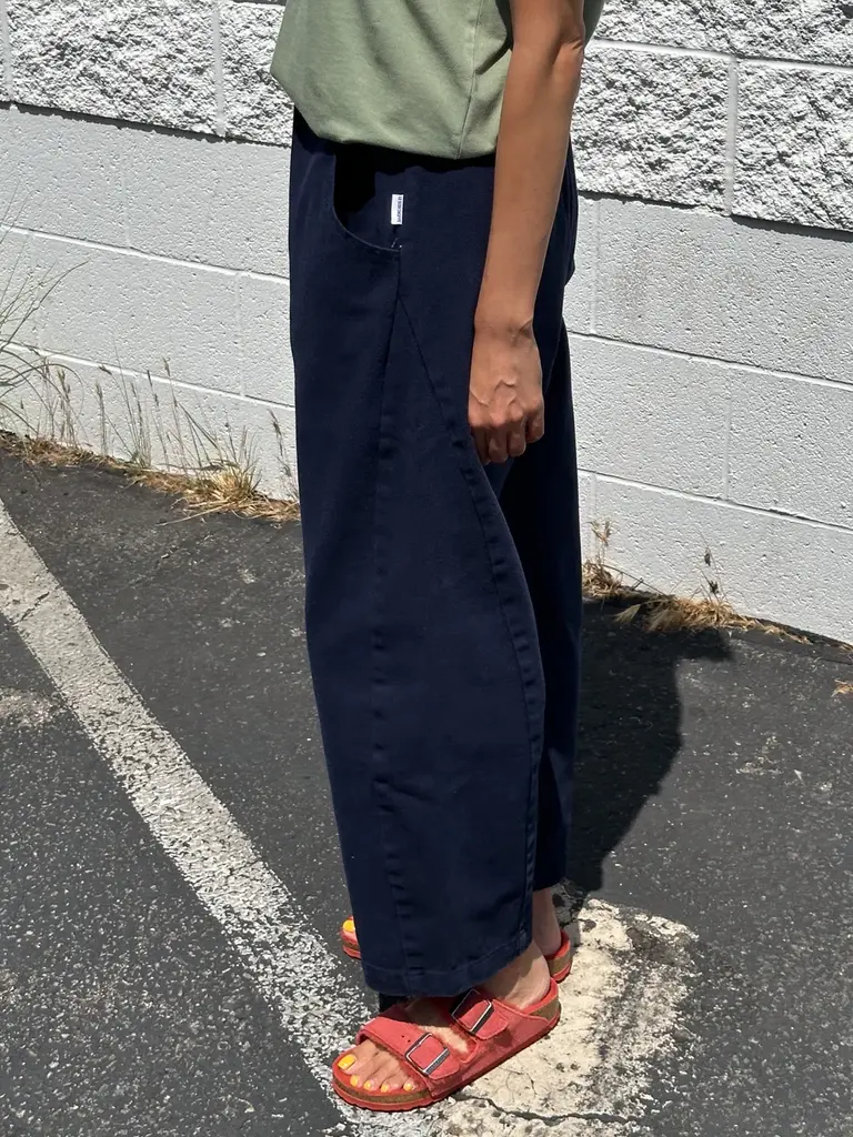 The Arc pants feature a slightly curved, cropped leg, side panels, and deep pockets. Their high elastic waistband provides optimal freedom of movement, and their heavyweight canvas provides durability and structure.