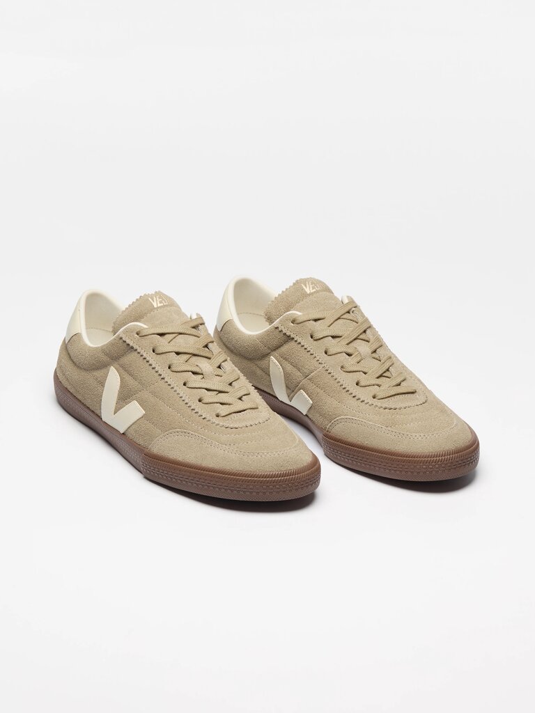 Suede is the underside of leather, sanded to give it a soft and smooth feel. It comes from farms in the Rio Grande do Sul region and is tanned in Brazil without harmful or prohibited chemicals. VEJA uses dyes that meet regulations and prioritizes responsible water use during the tanning process. This suede is then coated with PFC-free water-repellent oils to shield the shoes from light rain.