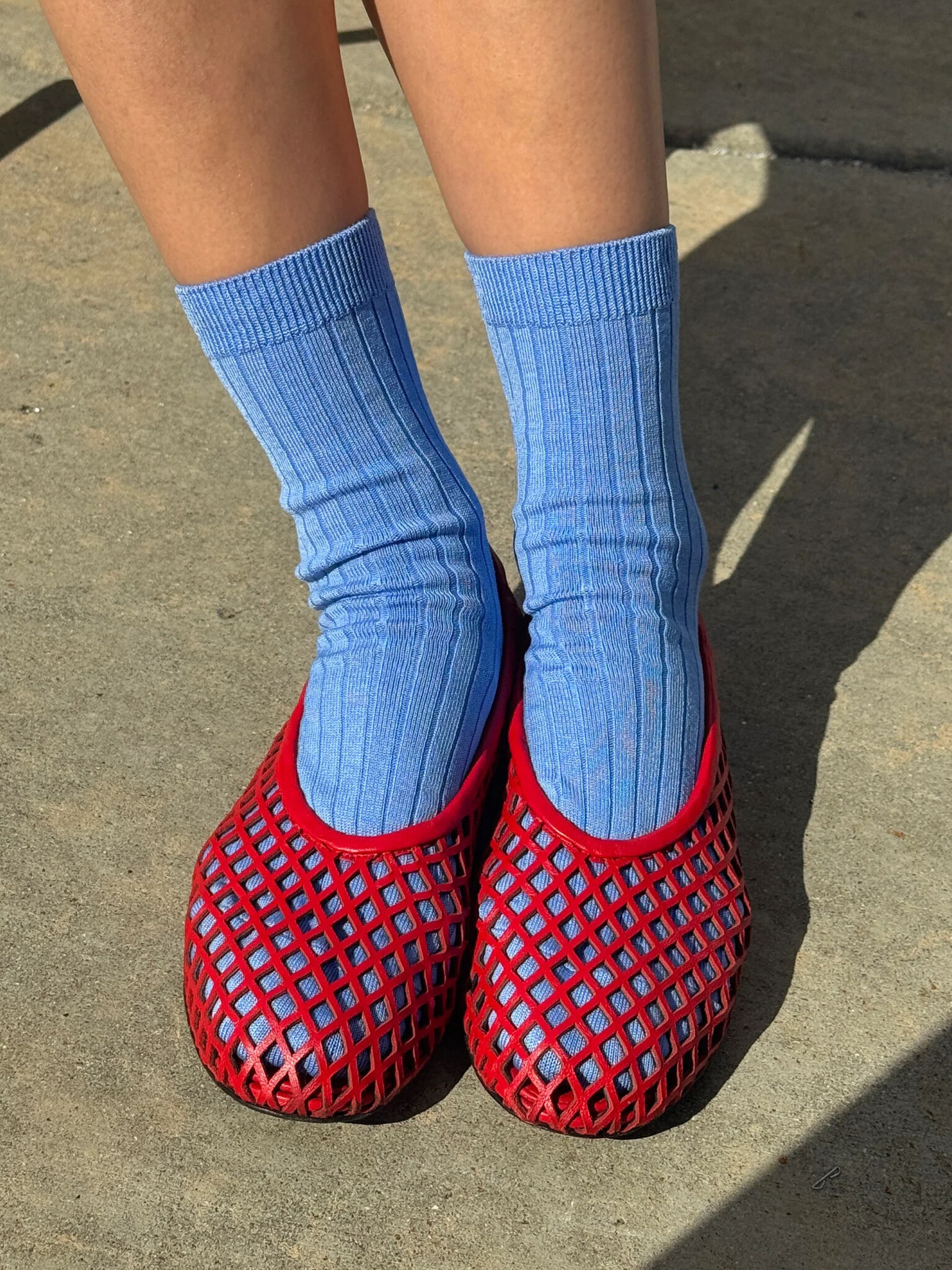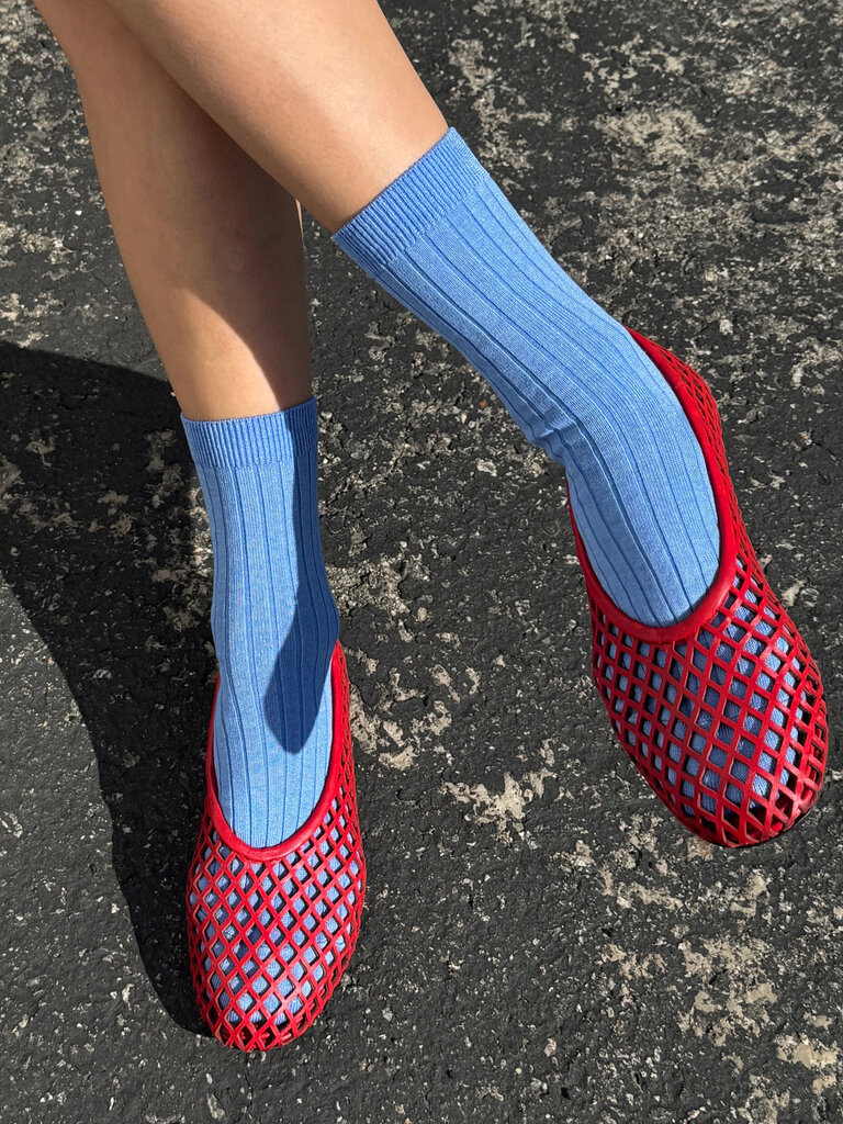 Classically ribbed, perfect height, breathable cotton blend yarn socks.