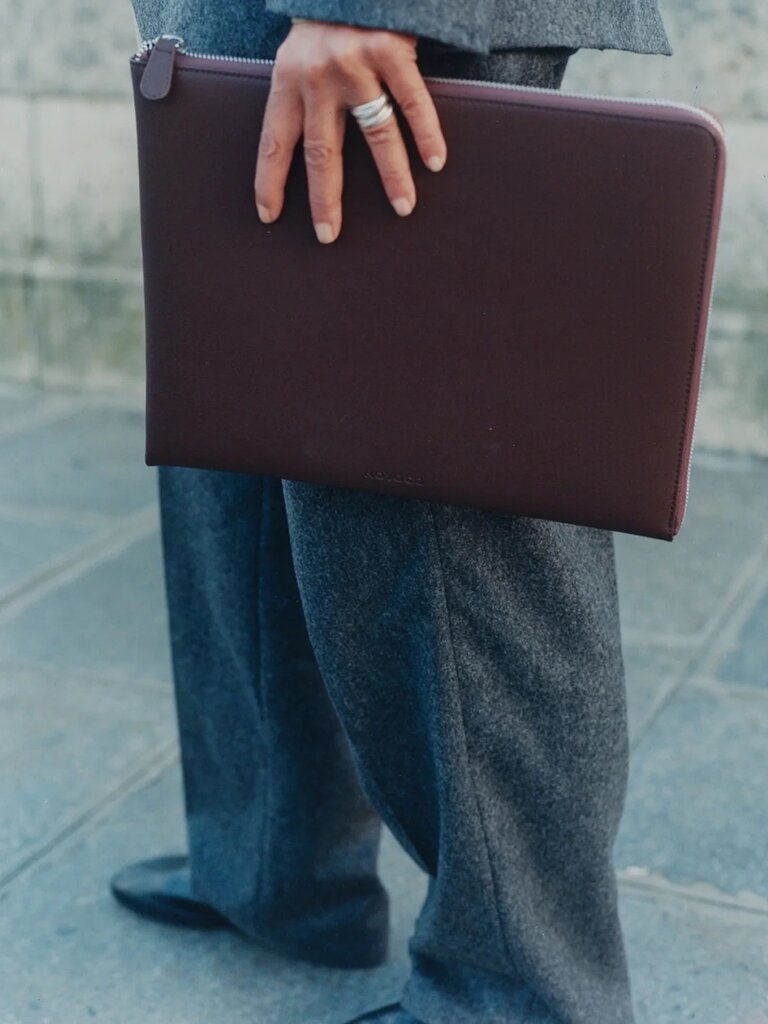 The NOYOCO computer sleeve is made from leather recycled from used gardening gloves by our partner Recycleather. It is designed to protect 13" computers.