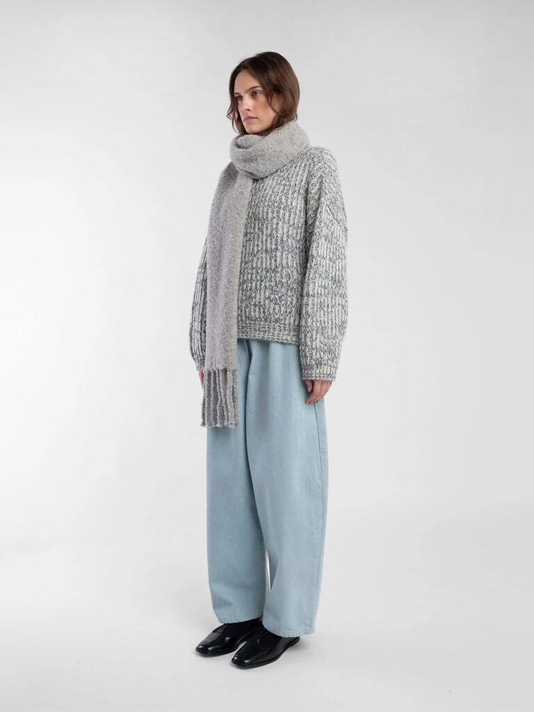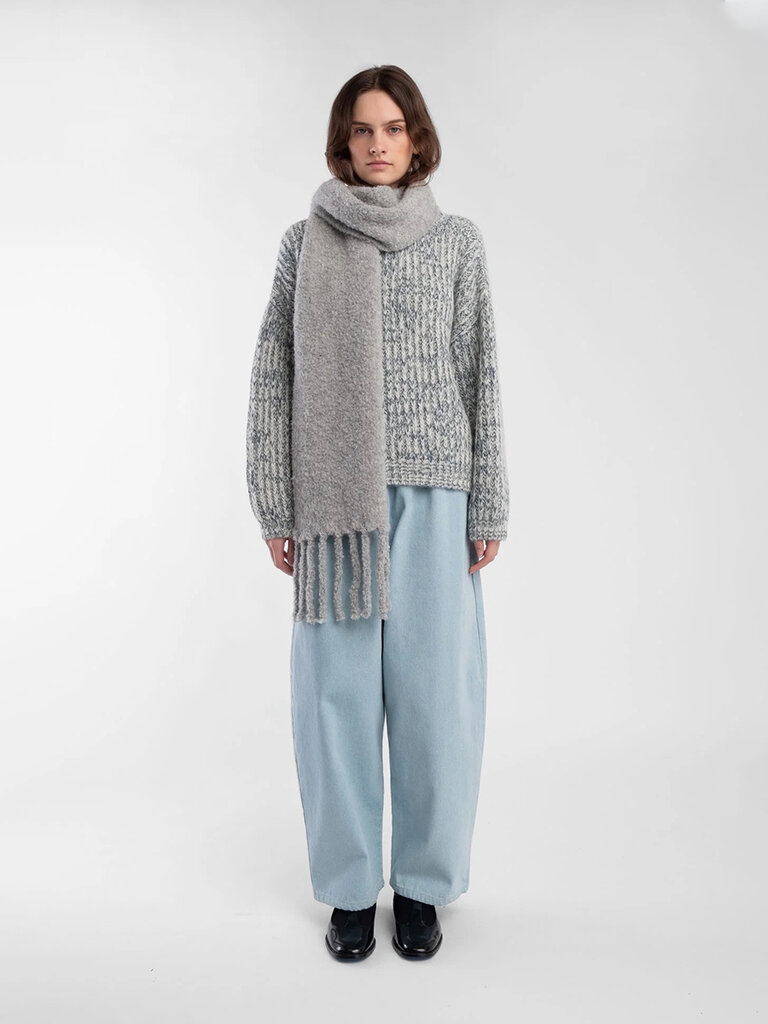 Curly alpaca fringe scarf . Heather grey