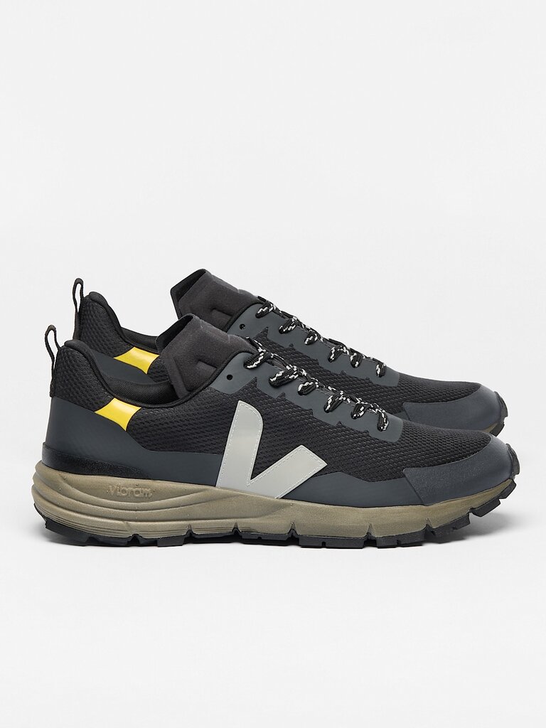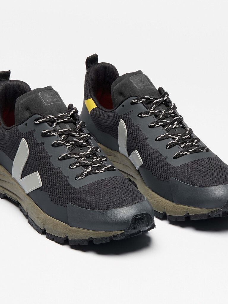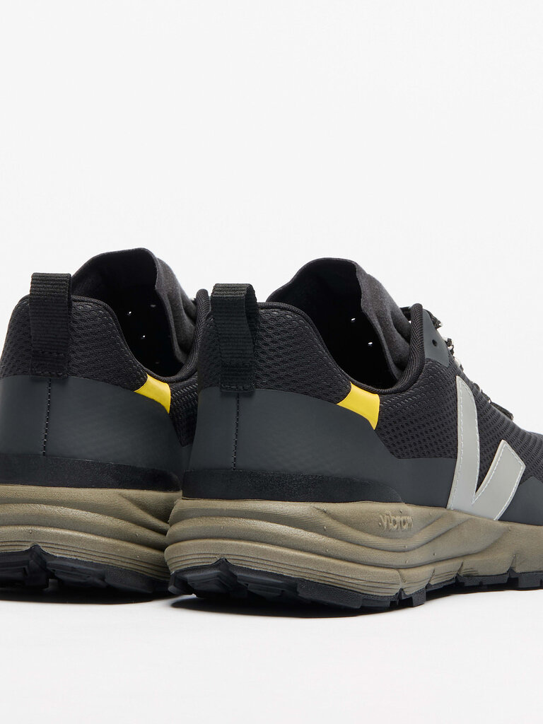 Materials: Upper: Alveomesh (100% recycled polyester). Inserts: 31% Amazonian rubber, 27% synthetic rubber, 24% mineral silica, 18% other and TPU. Insole: 13% Amazonian rubber, 65% bio-sourced EVA, including 52% sugarcane, 10% recycled polyester, and 12% other. Midsole: 61% bio-sourced EVA, including 49% sugarcane, 31% mineral carbonate, and 8% other. Outsole: 30% Amazonian rubber, 25% mineral silica, 24% synthetic rubber, and 21% other. Made with Vibram. Lining: 100% recycled polyester. Laces: 100% recycled polyester. Back loop: 100% recycled polyester.