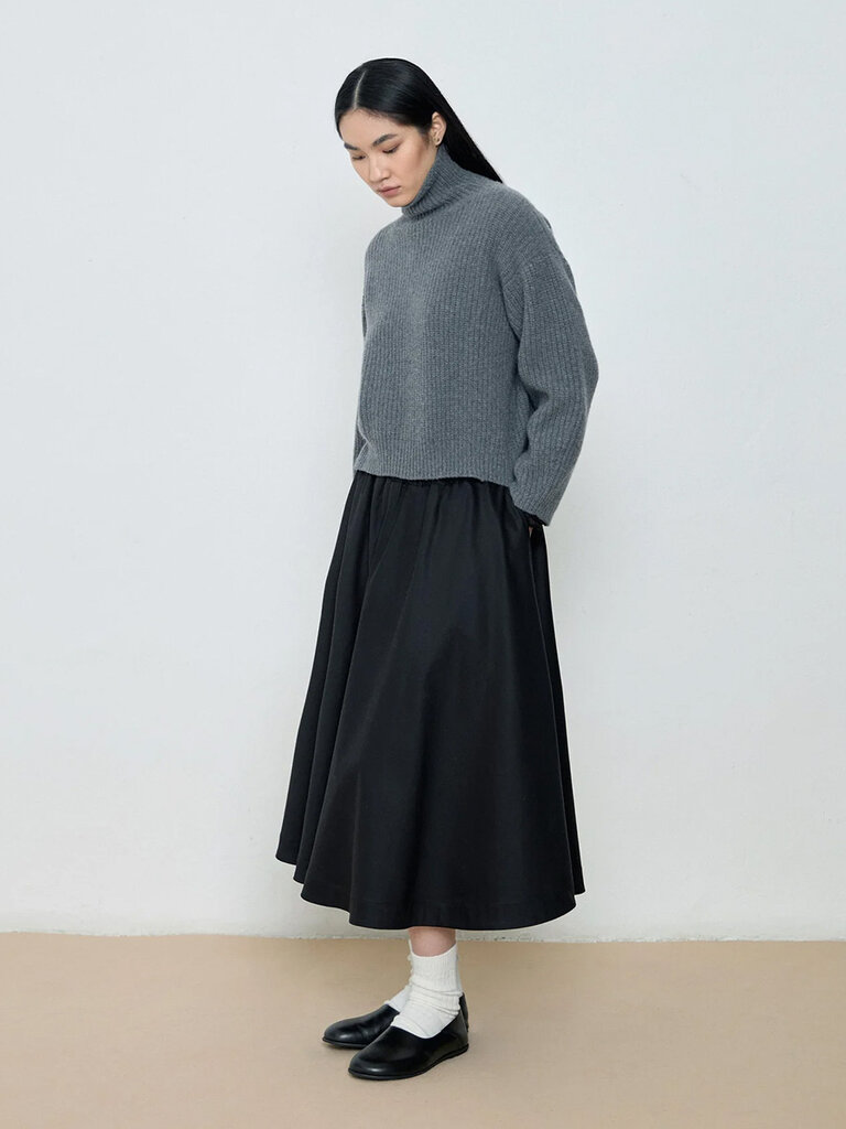 Flare skirt in a sustainable blend of Lyocell and Cotton fabric sourced in Europe. Features side pockets on the seams and an elasticated waistband.
