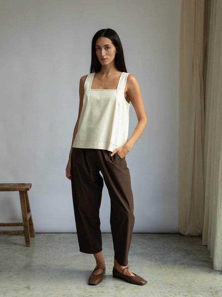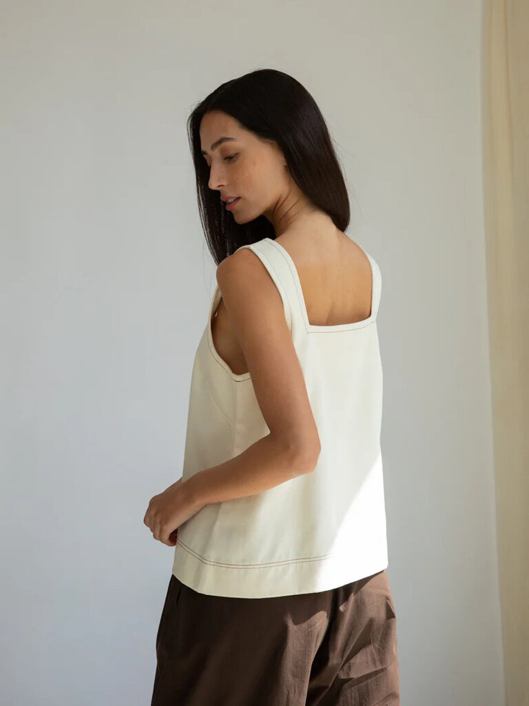 The Jess-Leigh vest top is crafted from 100% Organic Cotton denim, featuring a square neckline, wide straps and contrast stitching.