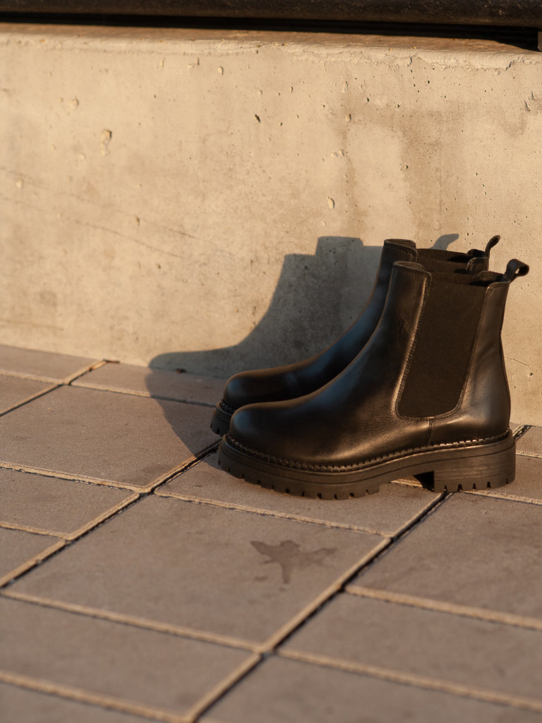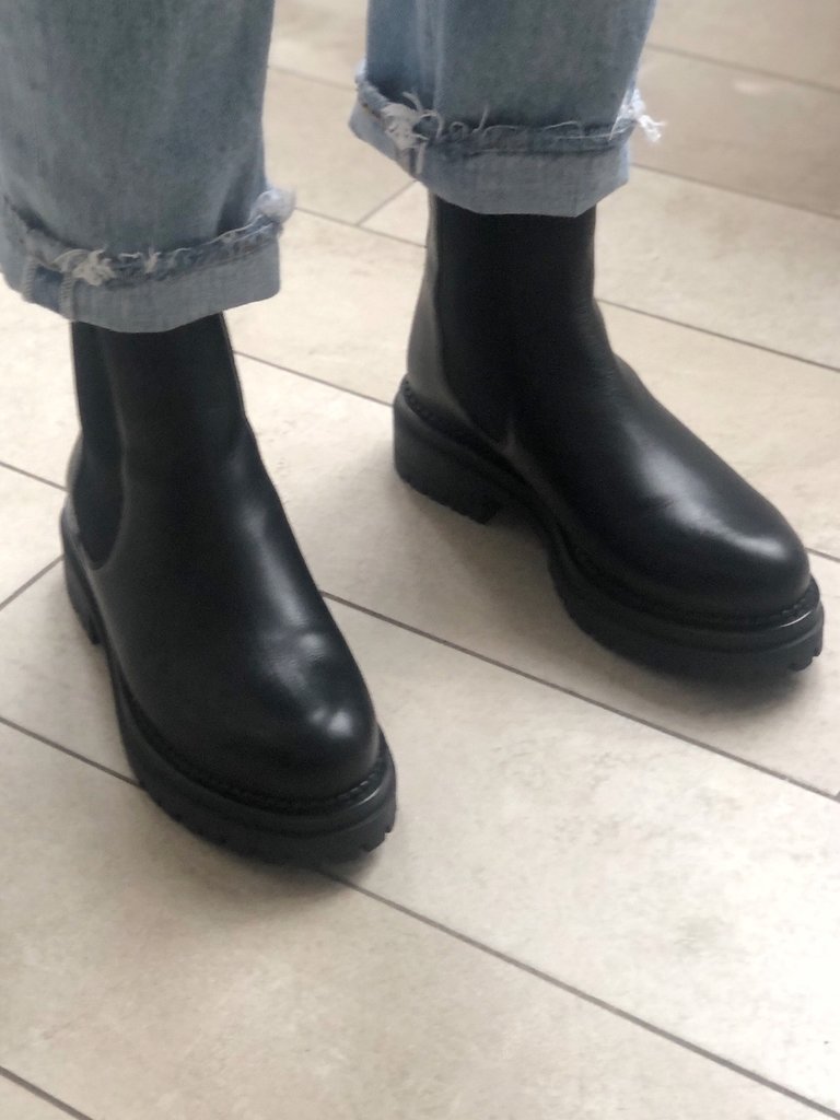 This light and confortable Chelsea black leather boot has a leather upper and leather Padded Insole & Lining. The pull tab at back stretch gusset makes it easy to slip-on. Round Toe and Small heel 1.75" (4.45cm). True to size, order your usual size.