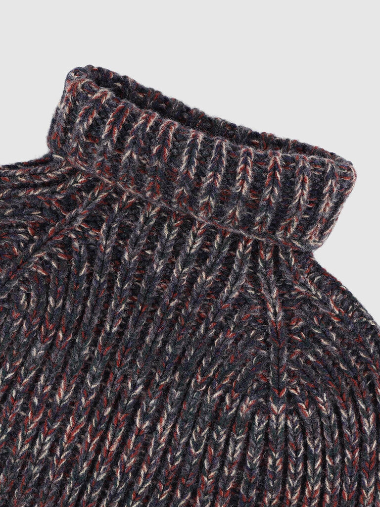 A turtleneck sweater crafted from a unique speckled yarn, this sweater features subtle multicolor accents incorporated into the yarn during spinning. These small colored fibers create a rich visual texture and give each piece a unique character.