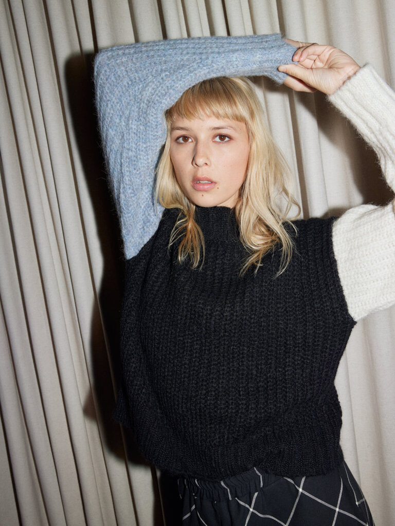 Soft, warm and comfortable: everything you need this winter! Designed in Montreal and made in collaboration with a sustainable workshop in Peru. Nova is 5'9 1/2 and wears size S. 89% superfine alpaca 11% Oeko-tex certified recycled polyamide.