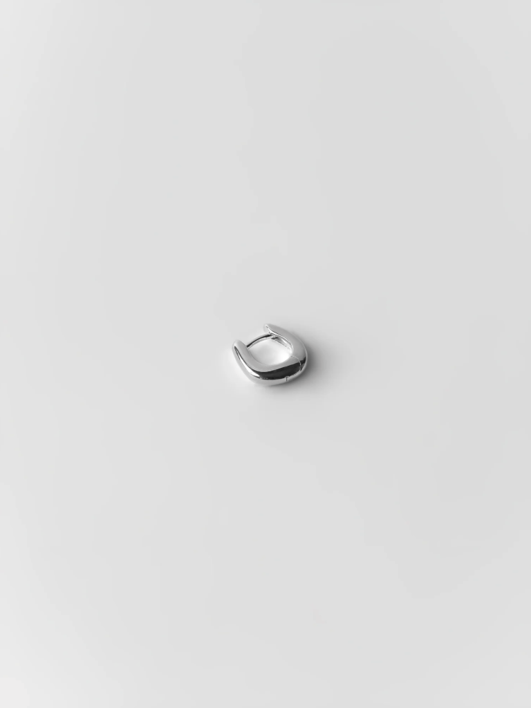 925 sterling silver huggie hoop earring with matching hinge. Measuring 12mm x 11mm, it offers a subtle, modern style. Sold individually, perfect for elegant everyday wear and easy to pair with other earrings.