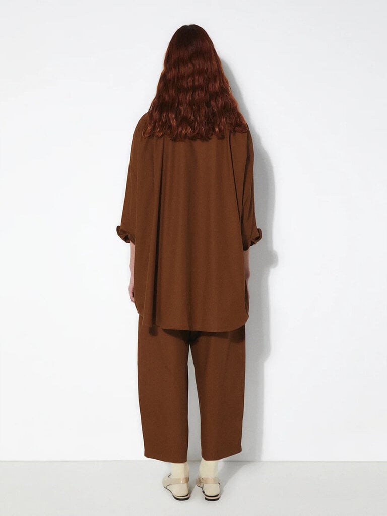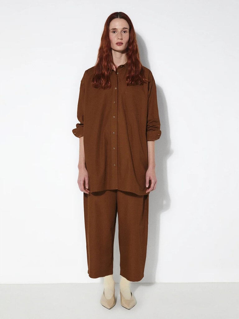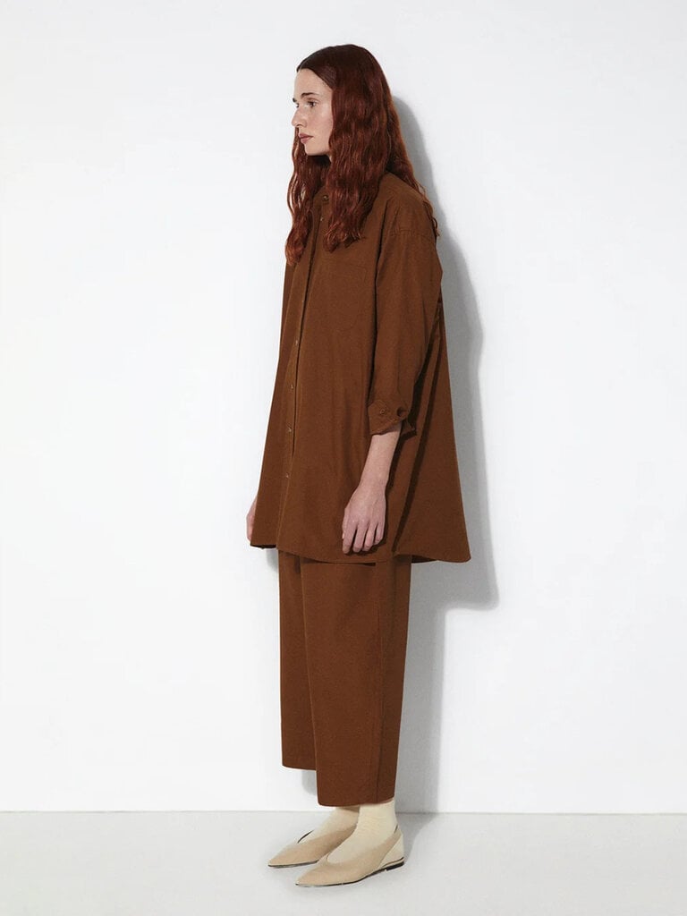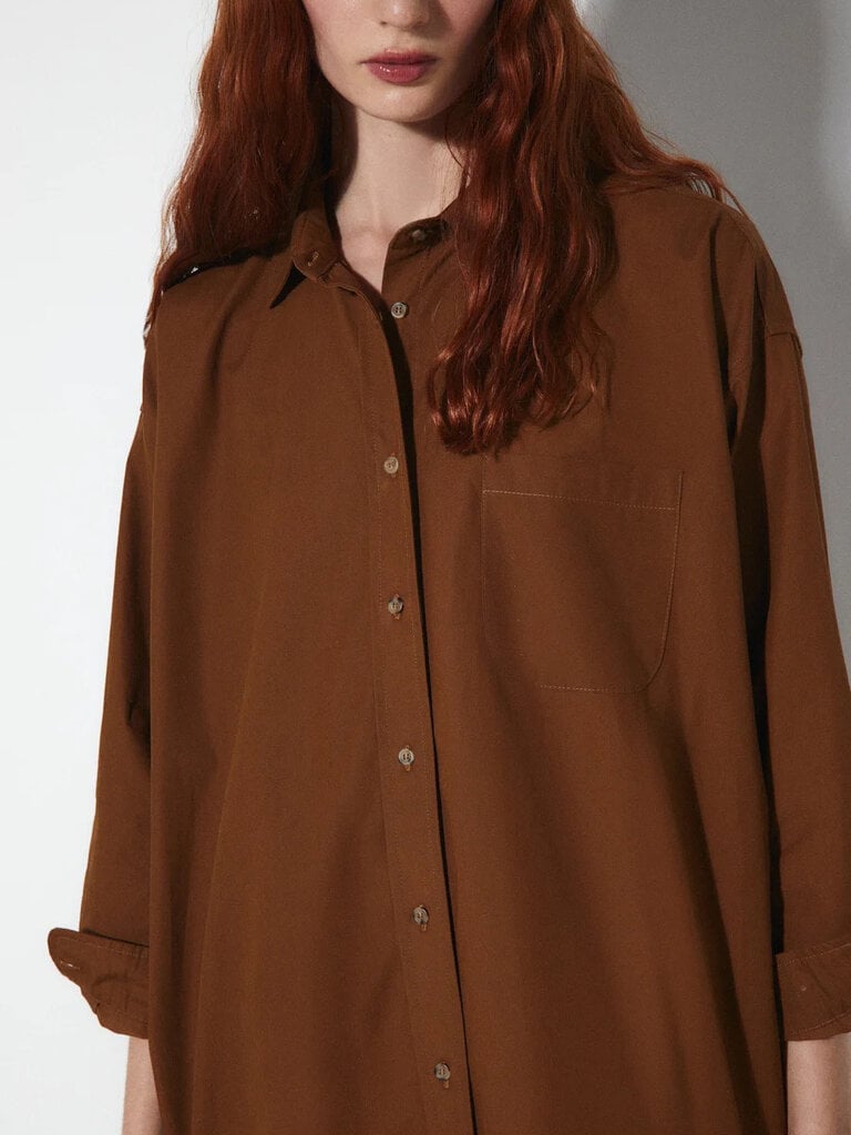 Oversize shirt in cotton poplin fabric with a classic collar and placket. Model with long puffed sleeves and adjustable button cuffs.