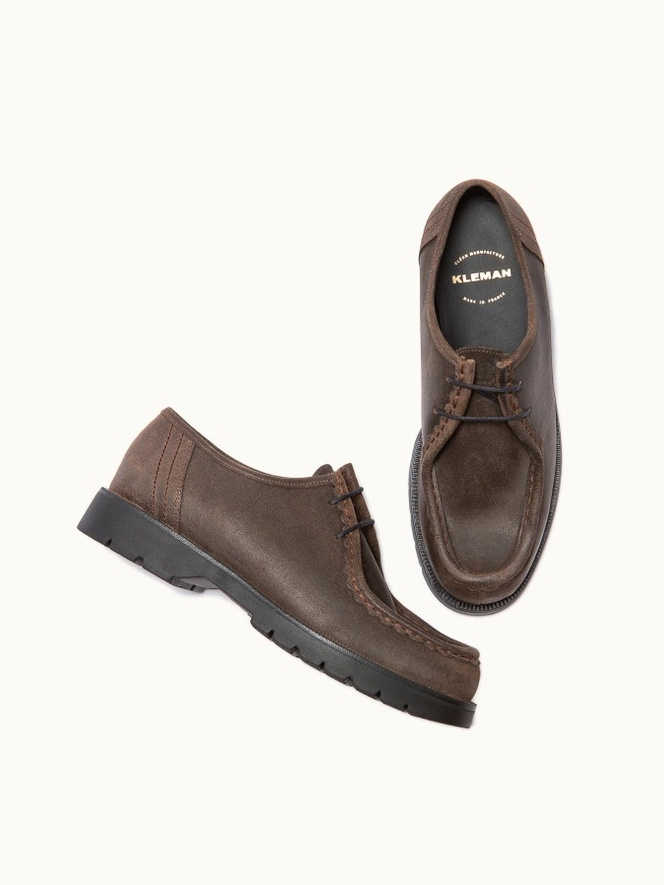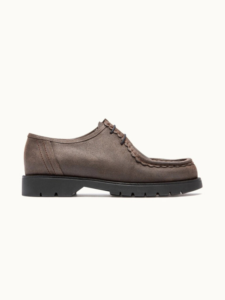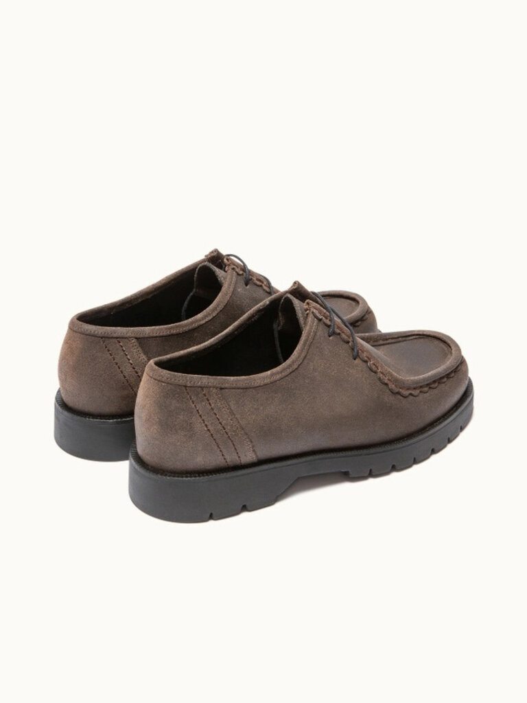 The Padror EC lugged-sole derbies are made from split suede tanned in our historic tannery in Spain. The split suede has been waxed to give it a more vintage, raw patina without altering its texture.