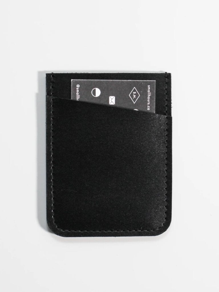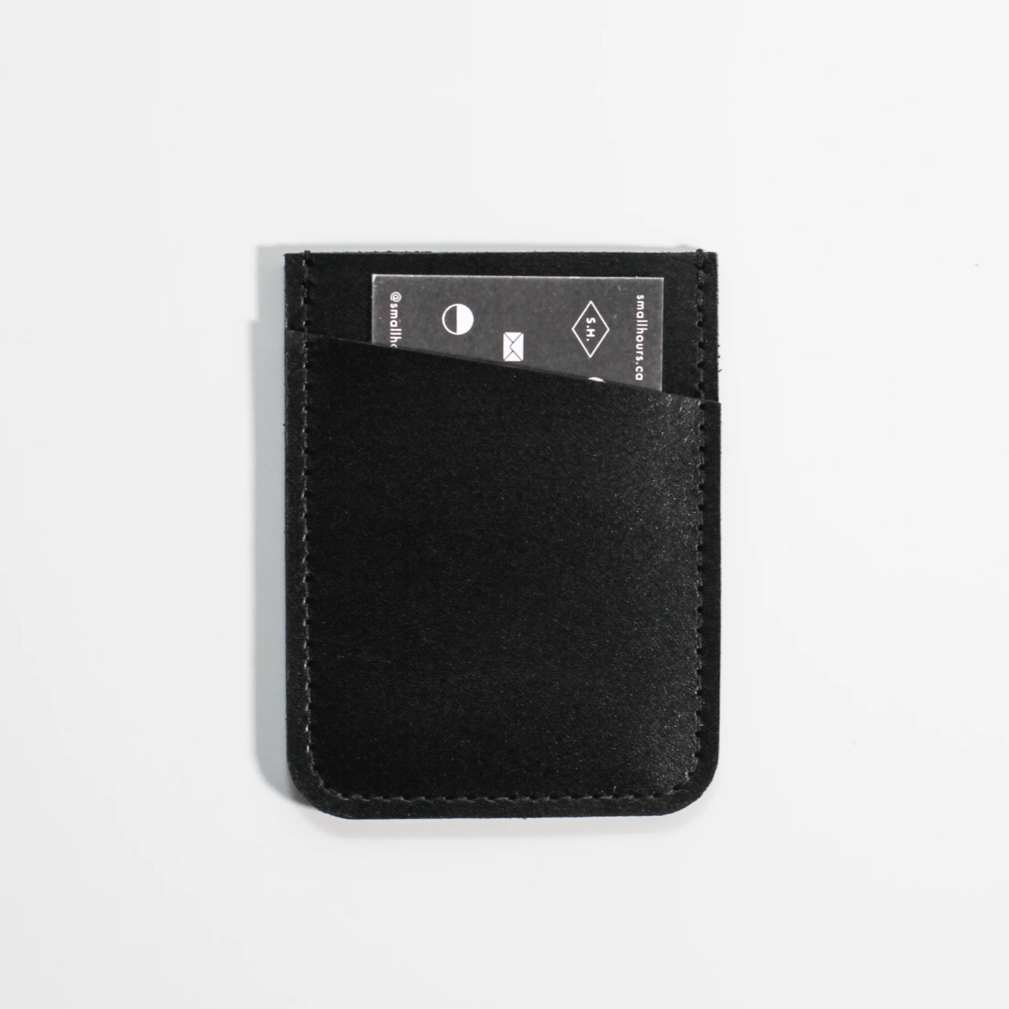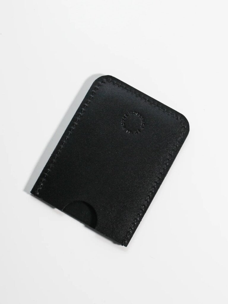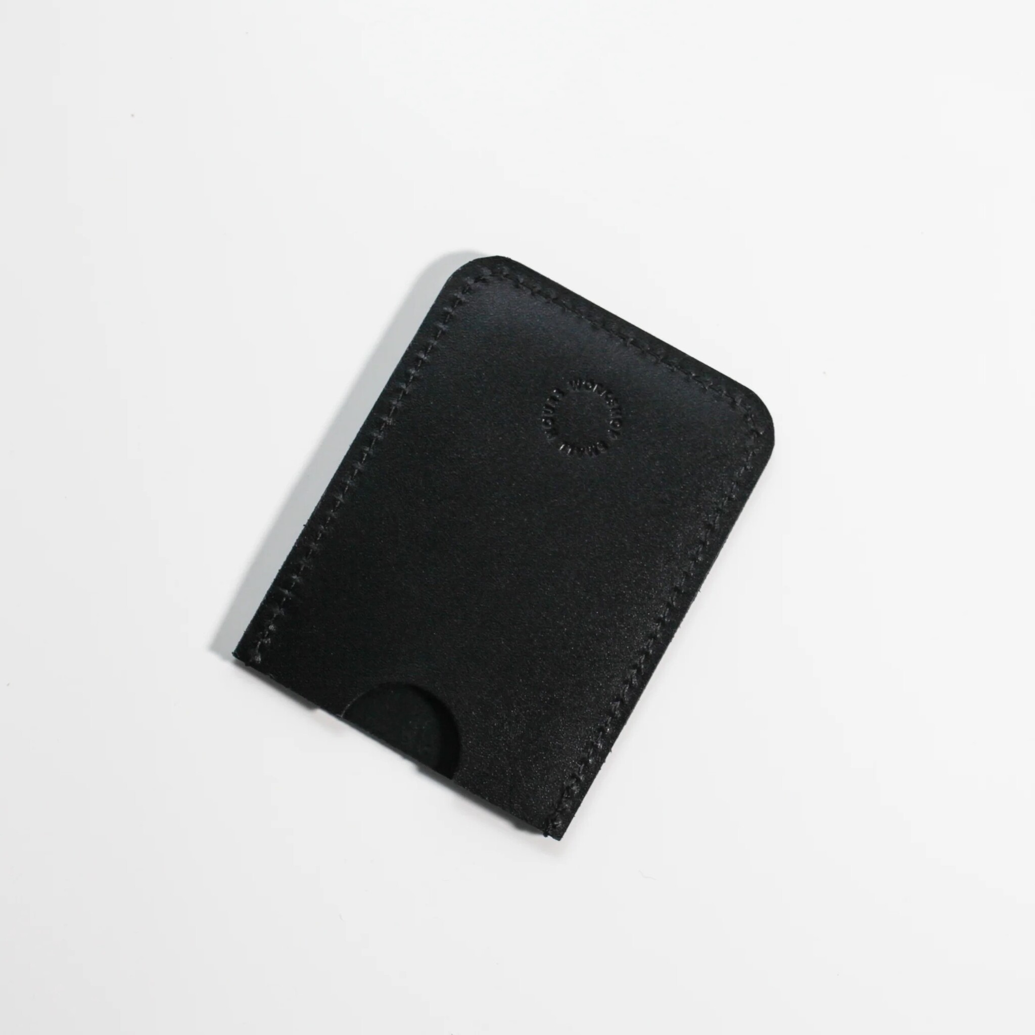 A sleek leather card holder, designed with two pockets to keep your essential cards organized. The slim profile and vertical orientation make it effortless to fit into your front pant pockets for quick access on the go.