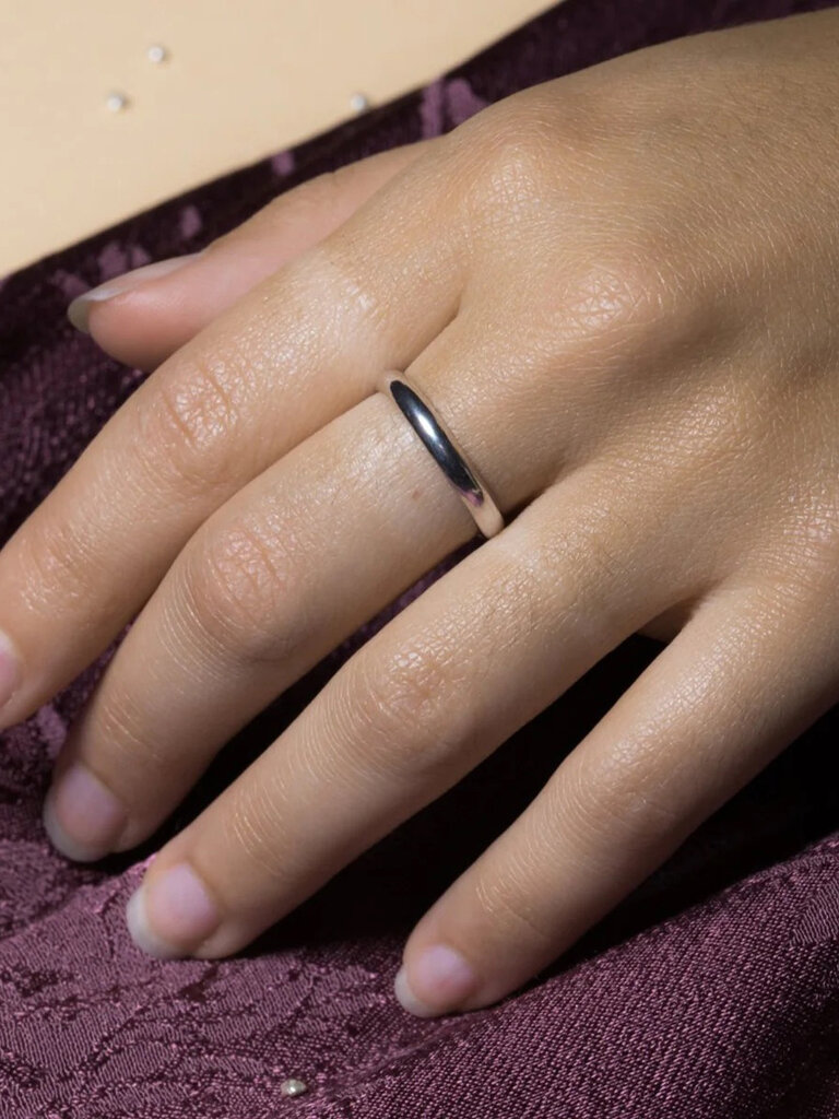 The Small Half Round Ring is a minimalist sterling silver (925) ring that fits with everything. It' 3 millimeters in width.