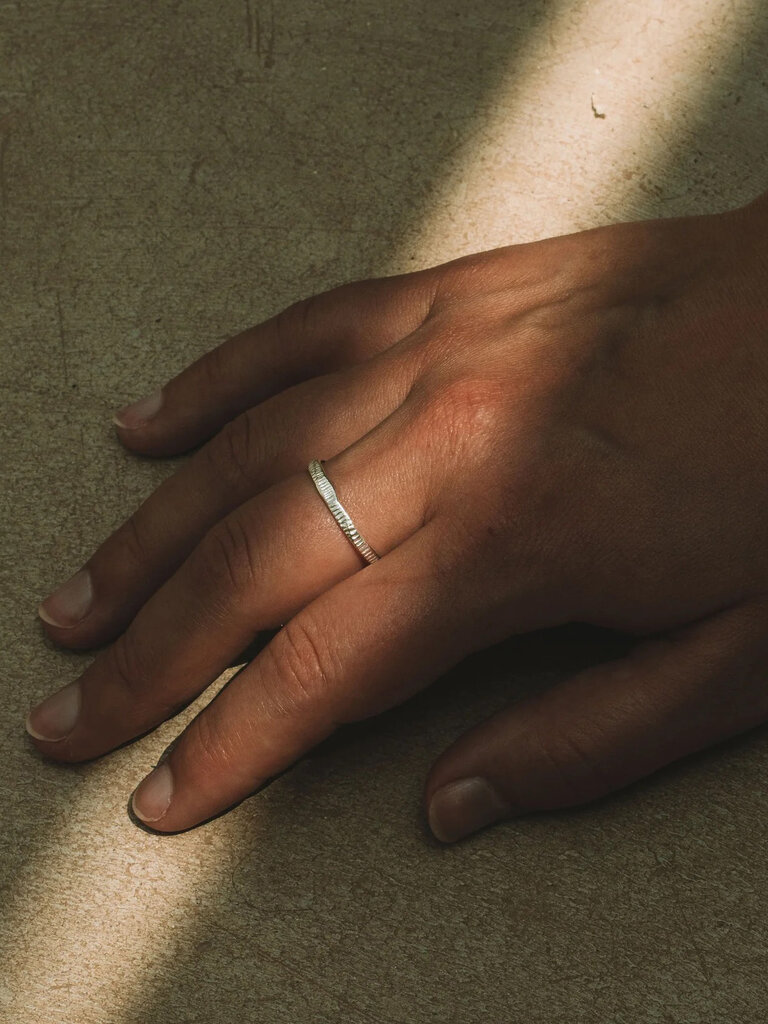 The small Reef sterling silver (925) ring is part of the Nostalgia collection. It captures a vibrant love of summer vacation with ready-to-wear keepsakes that celebrate bygone eras with elegance. The width of the ring is approximately 2.5 millimeters.